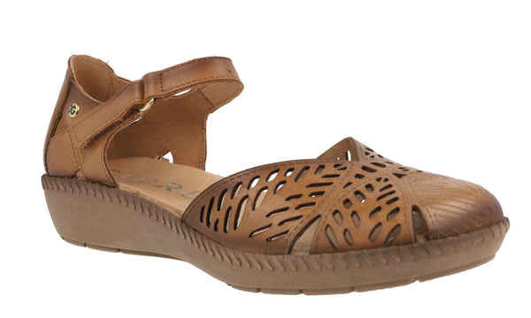 GIORDA Sandalias de piel troqueladas con tira de velcro para mujer