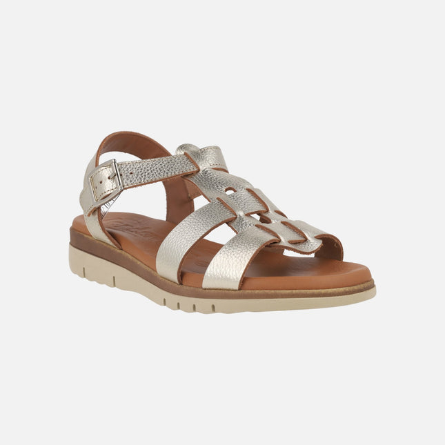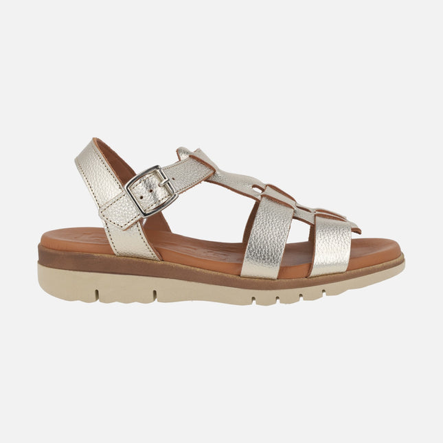 JORDANA Sandalias de piel con cuña y adorno metálico