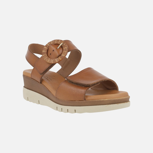 JORDANA Sandalias de piel con cuña baja y cierre de hebilla
