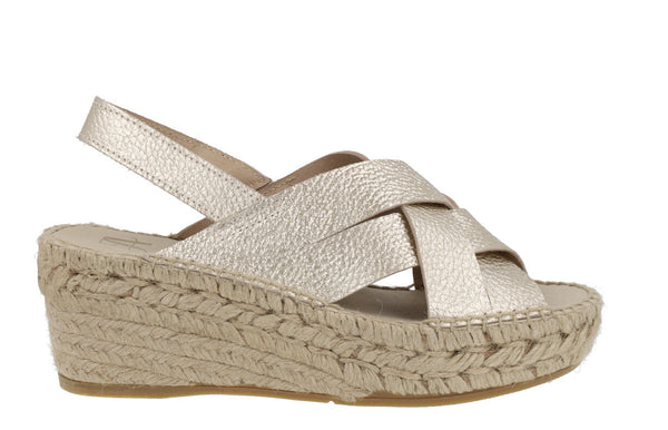 JUNCAL AGUIRRE Alpargatas valencianas Silene en ante oro con cintas y plataforma de yute