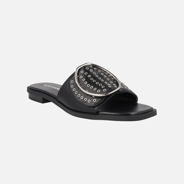 NOA HARMON Sandalias negras planas con remaches y maxi hebilla Maria