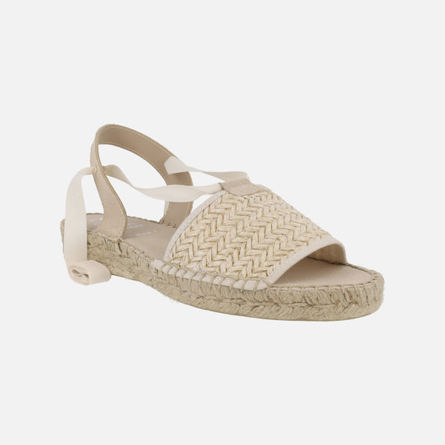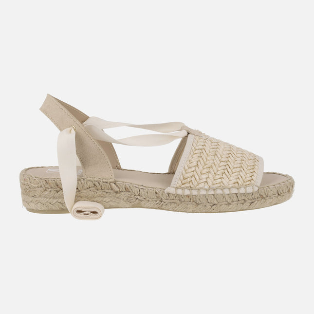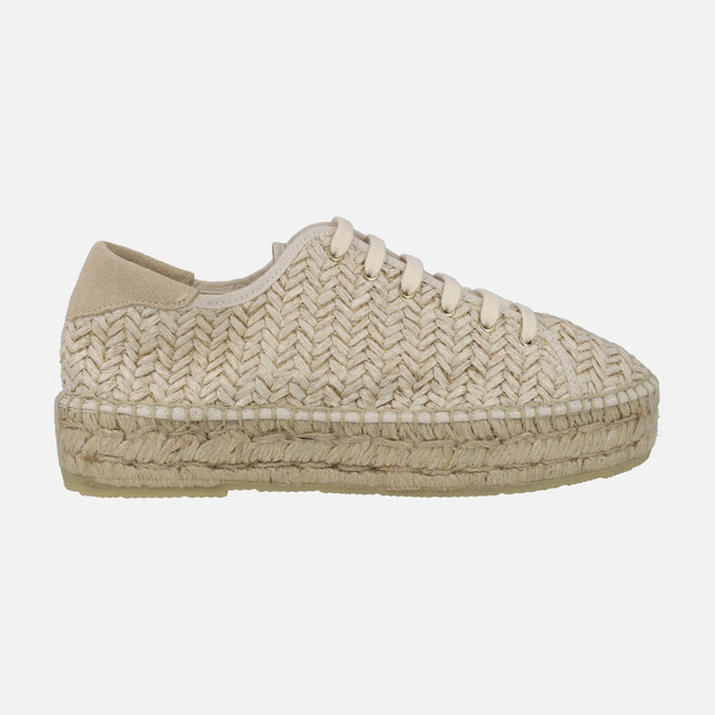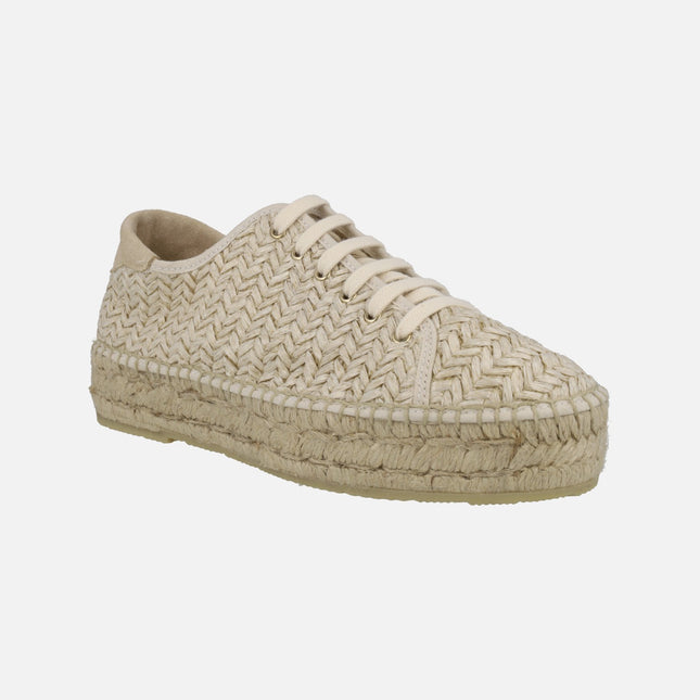 JUNCAL AGUIRRE Low beige braided raffia espadrilles with laces