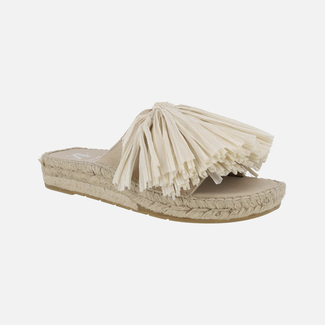 VIDORRETA Brightness raffia espadrilles in raw color with jewel detail