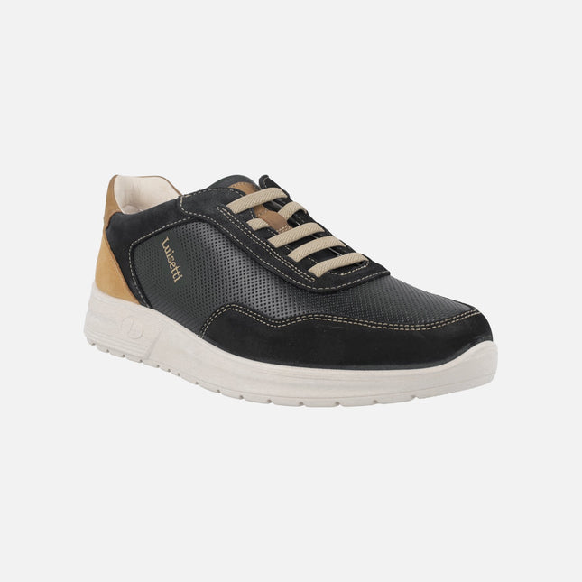 G COMFORT Men's black leather wide-fit sneakers with TEX membrane