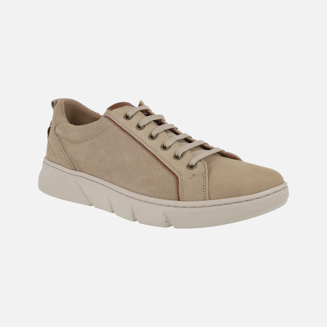 LUISETTI Men's lace-up sneakers in waterproof taupe nubuck