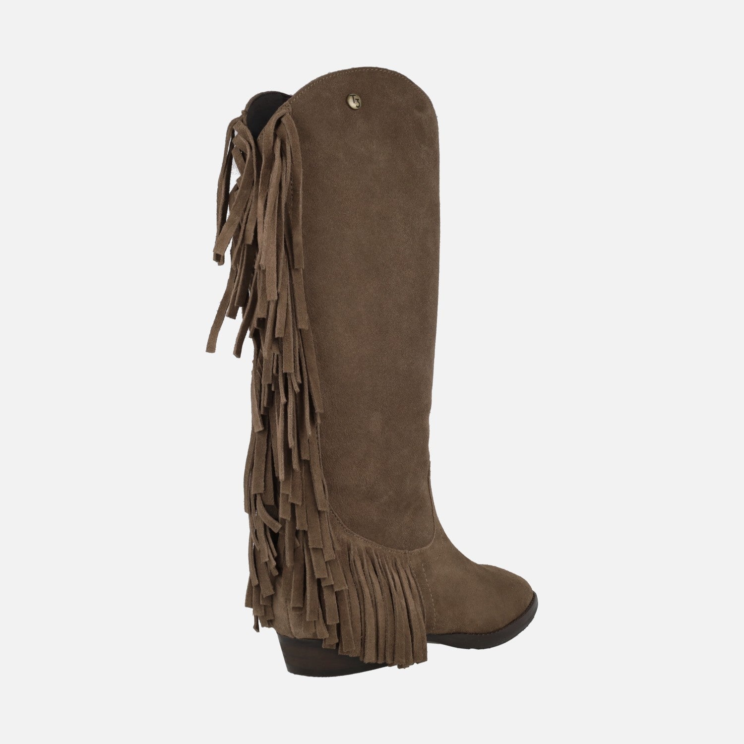 High Boots of the Top3 brand SS803 Taupe model. Suede leather boots, with fringes detail in the back and heel. Zip closure on the inner side. Interiors in combined fabric and synthetics. Heels of 2.5 cm. 35 cm leg. Synthetic outsole.