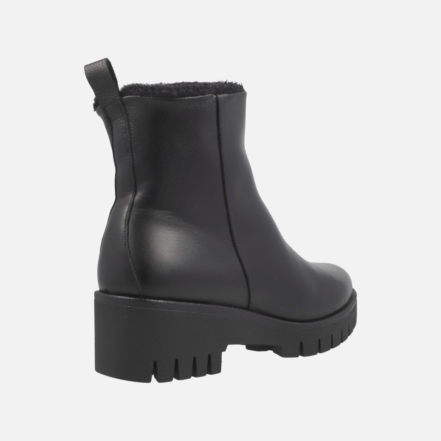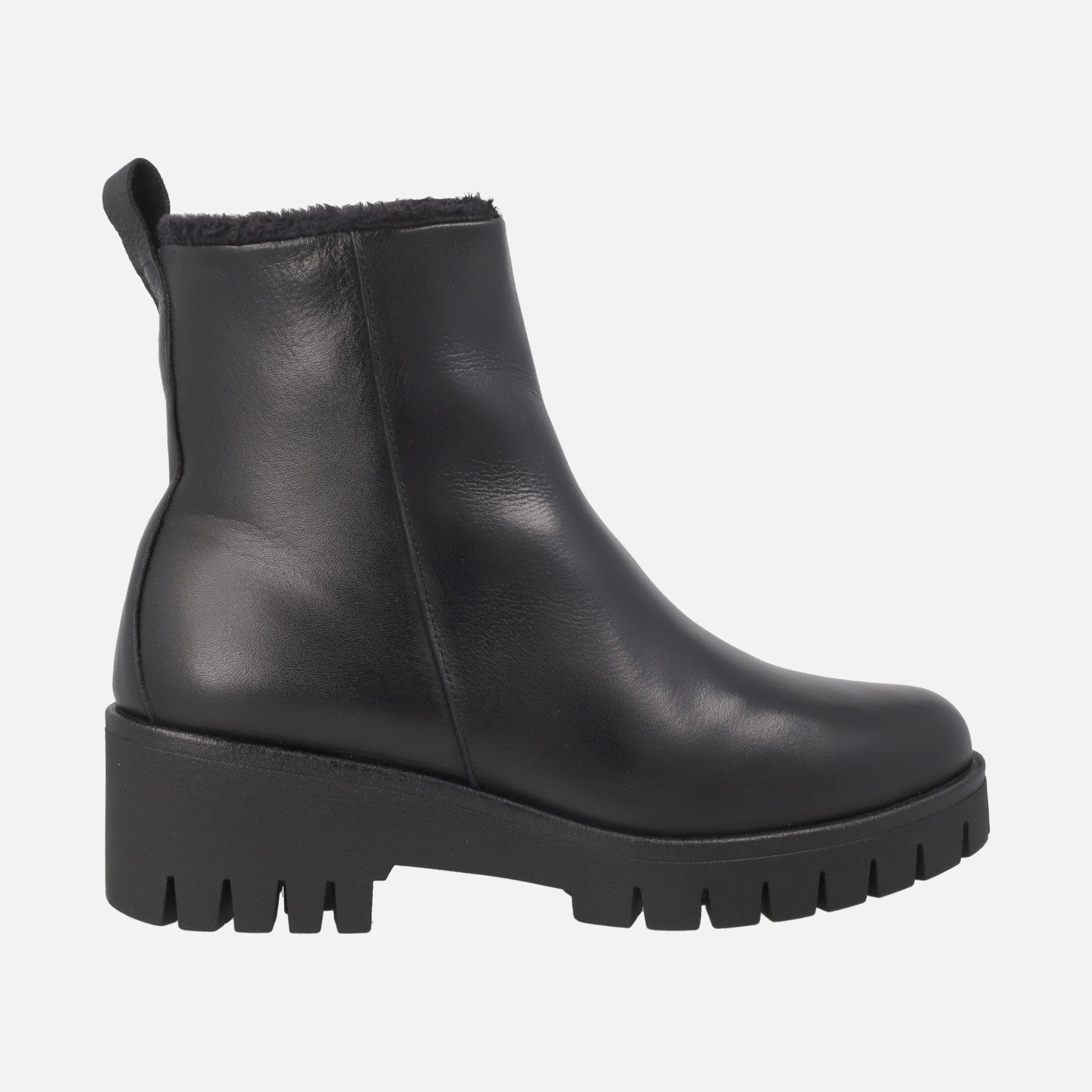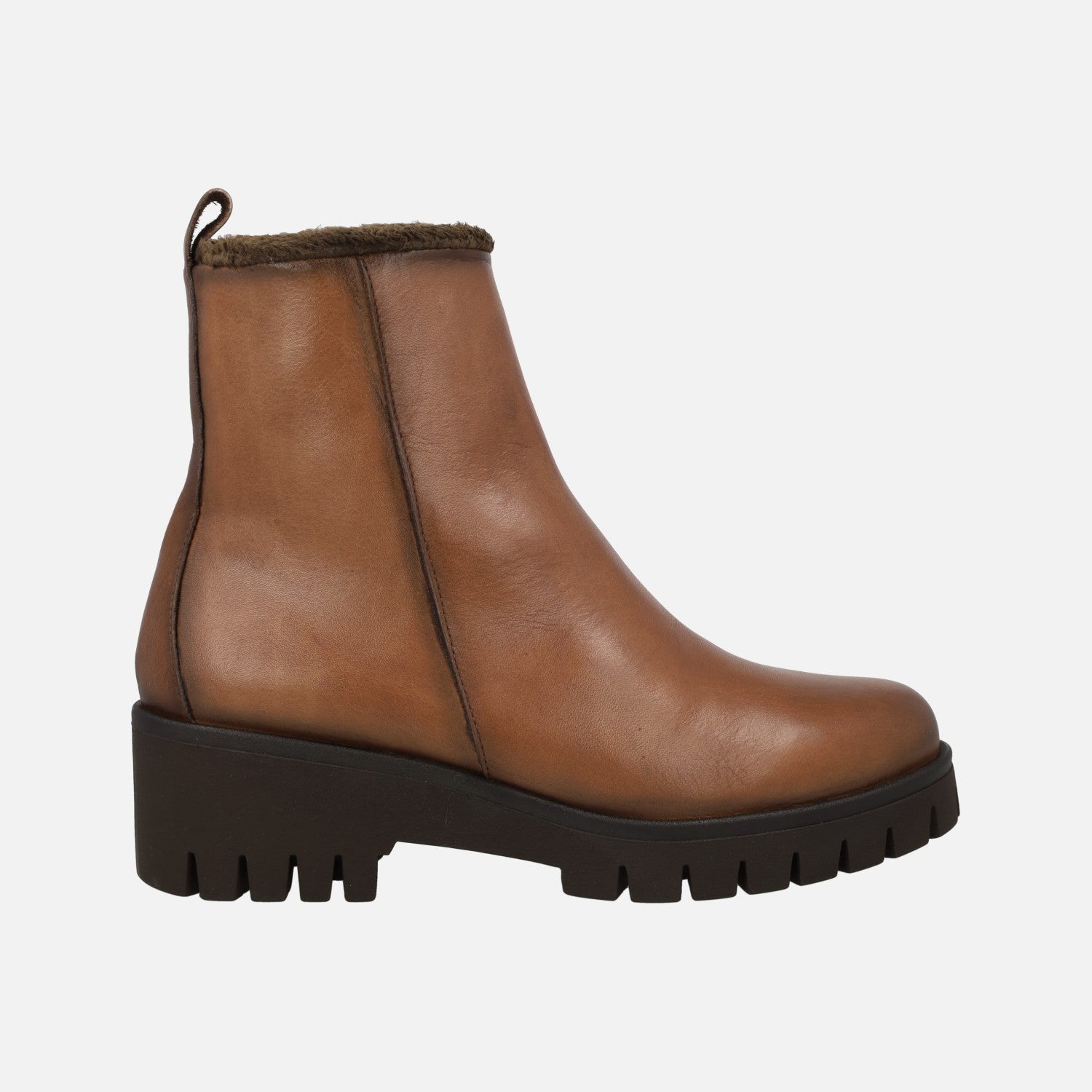Leather ankle boots with furry lining and middle wedge