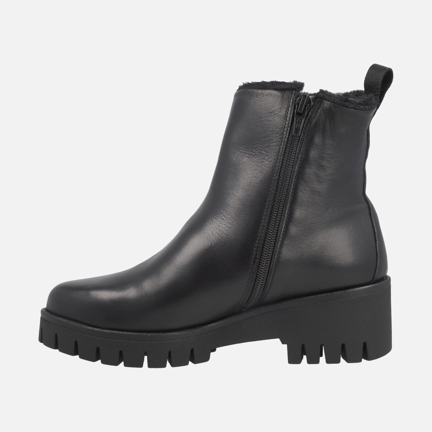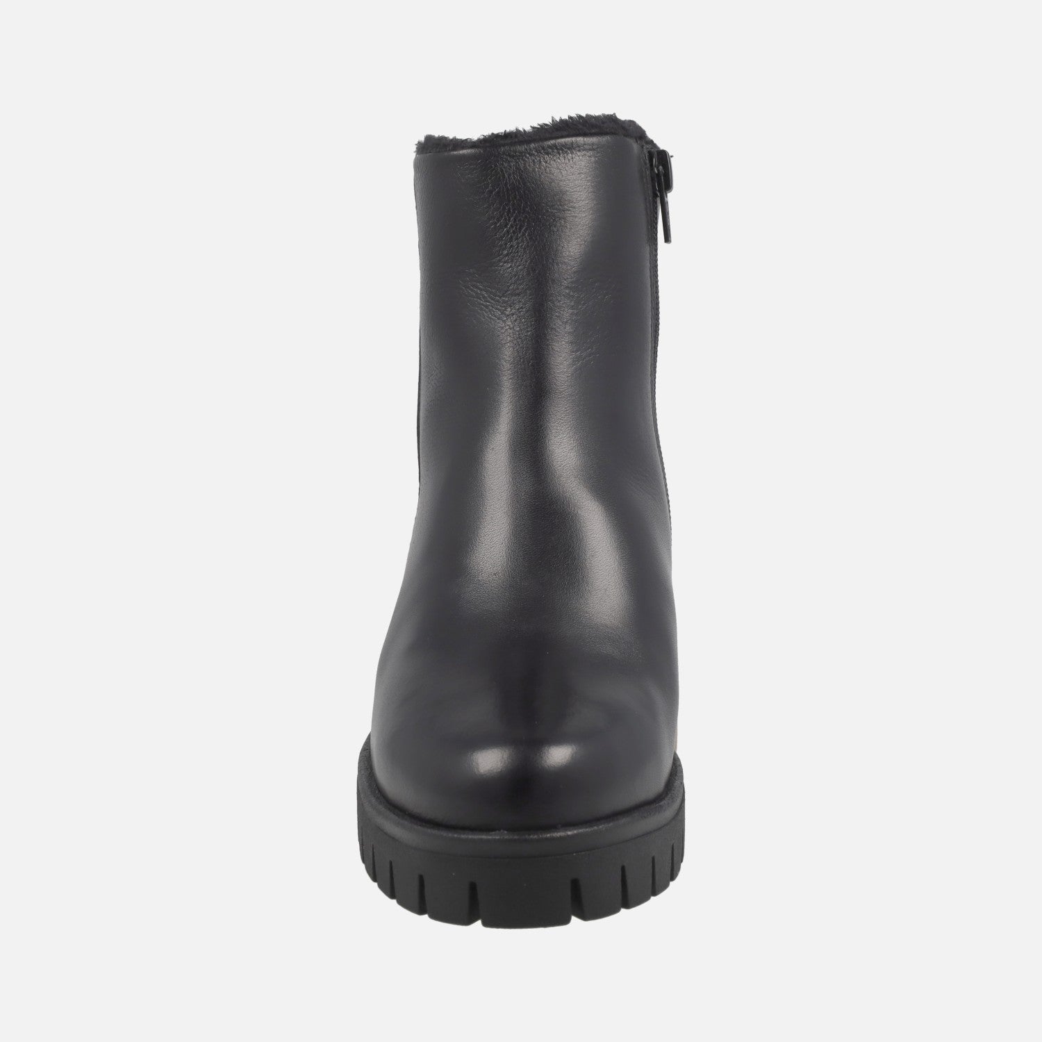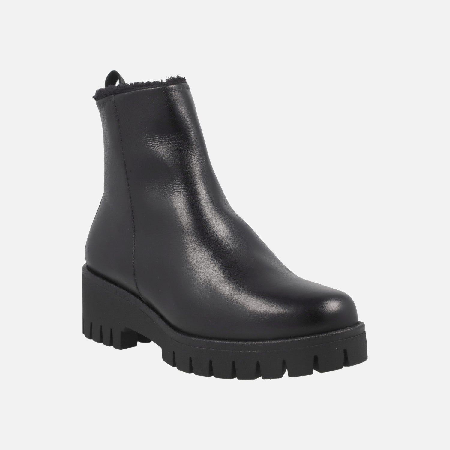 New comfort ankle boots by the brand Giorda model BO30931 available in Black and in leather brown. Leather ankle boots with furry lining, zip closure on the inner side. Leather insoles. Rubber outsole, with 5 cm back wedge (2 cm in the front). 12.5 cm leg. Made in Spain.