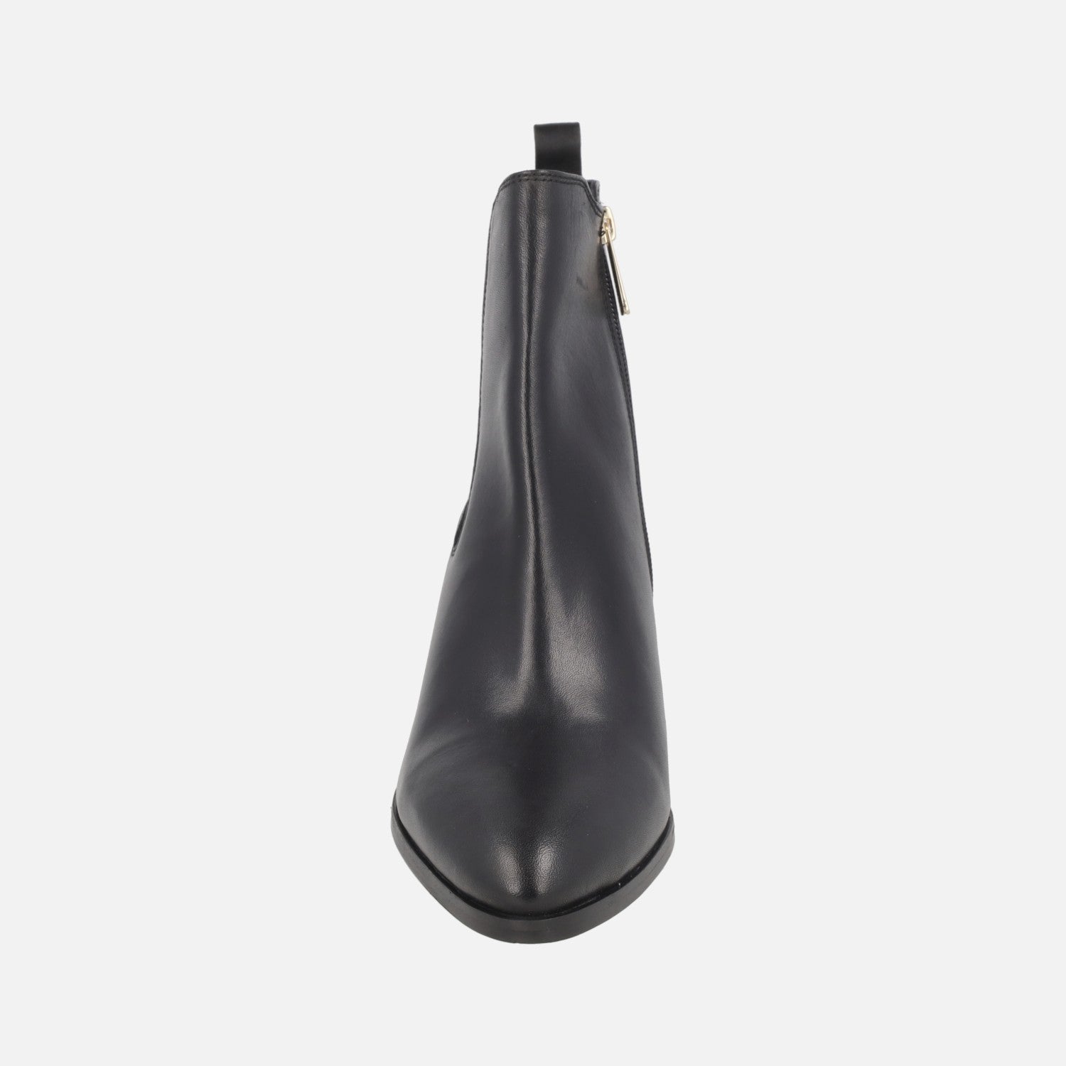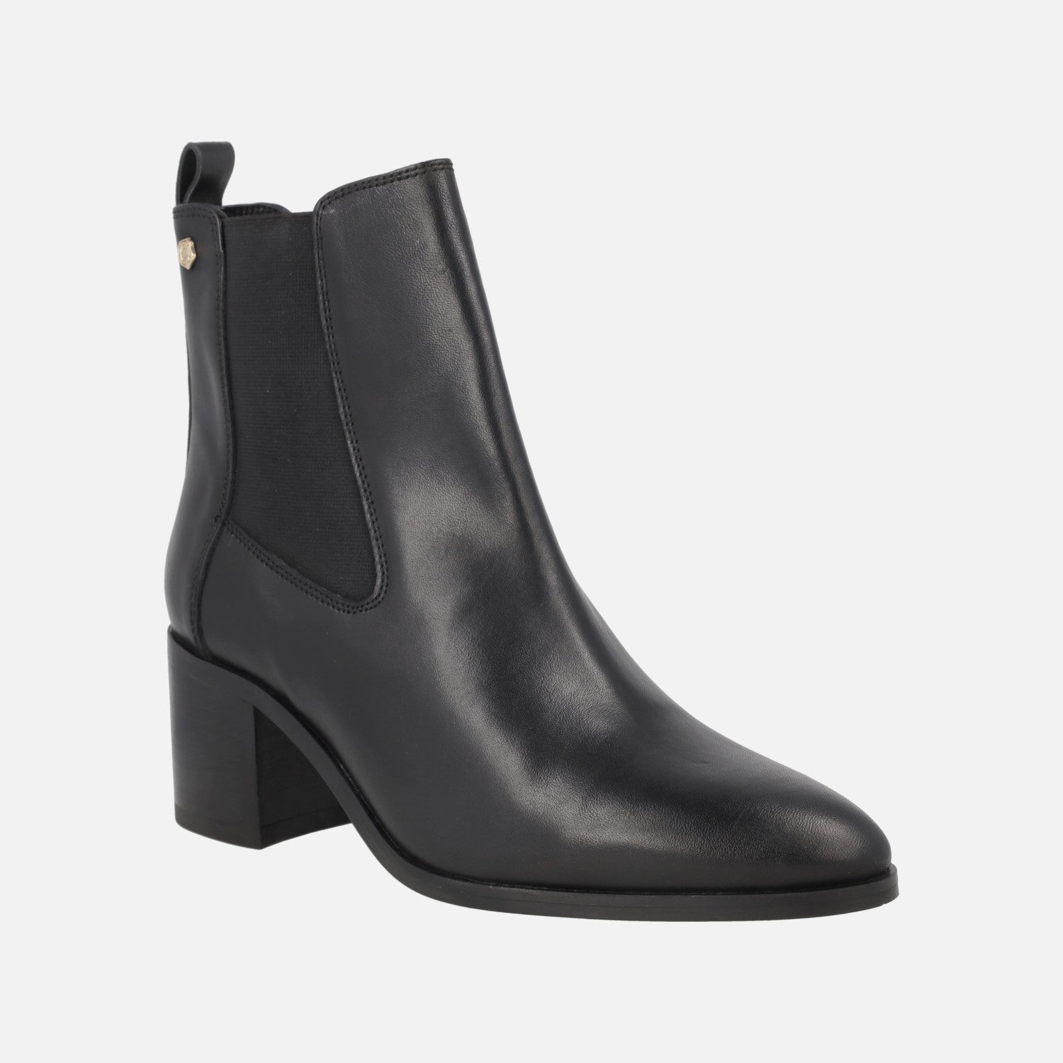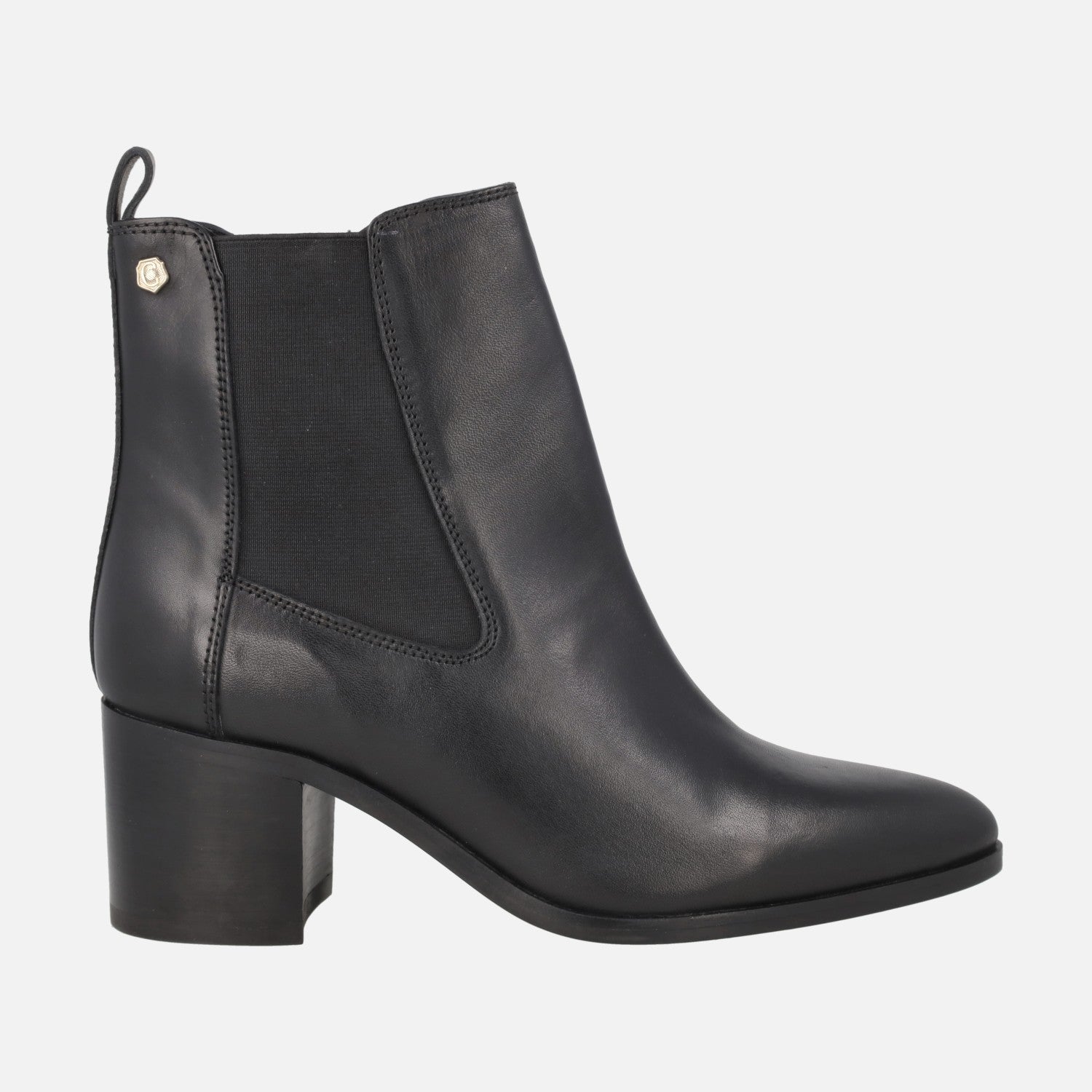 Leather booties of the carmela shoes brand model 162715. Black boots or chocolate brown, leather with elastic on the outer side and zip closure on the inner side. Interiors in skin and fabric combined. 13 cm cane with shooter. Synthetic floor 6 cm heel.