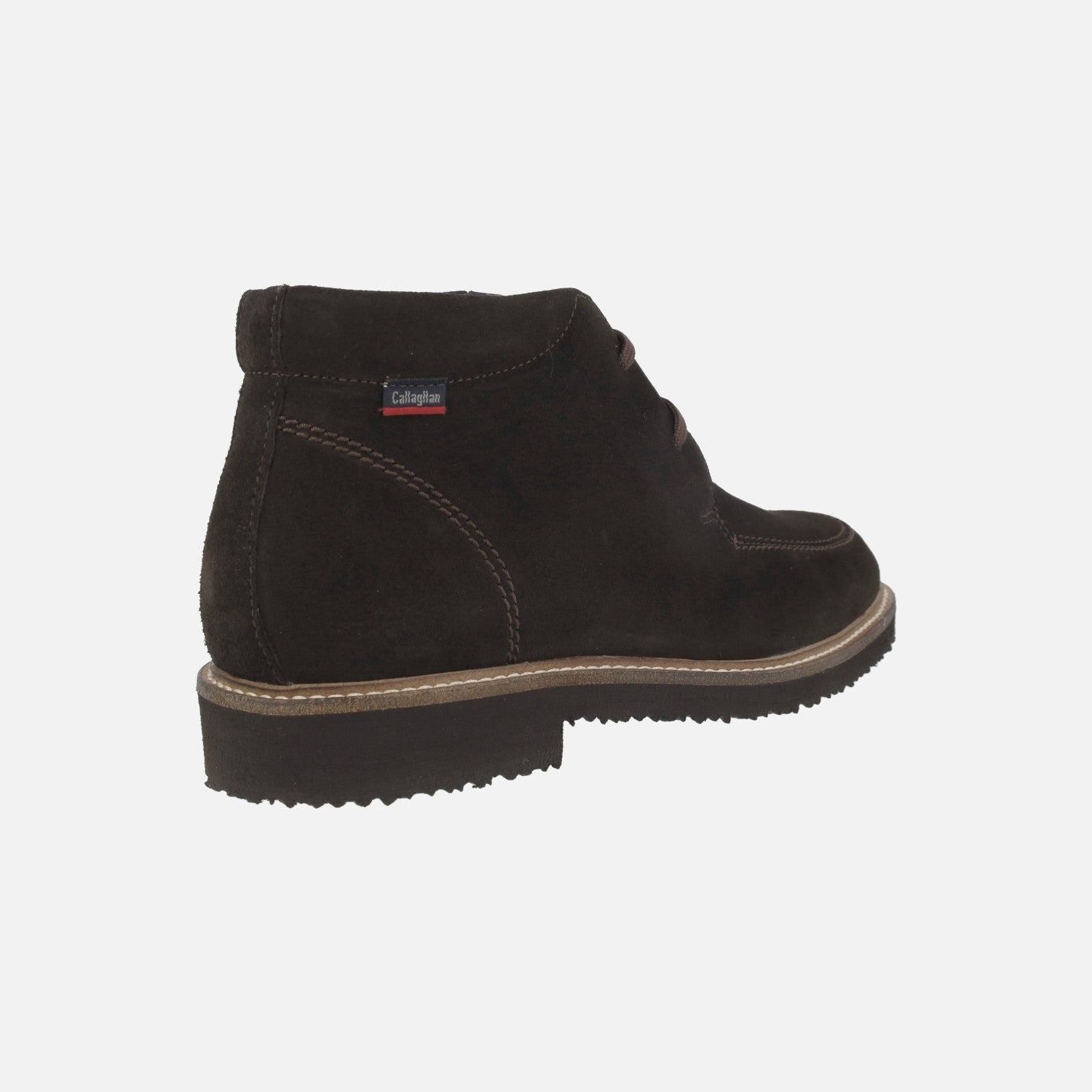 Lace-up ankle boots for men from the Callaghan brand model 19704 Brown. Ankle boots made of chocolate brown suede leather, with lace closure. Textile interior with removable insoles. Synthetic outsole.