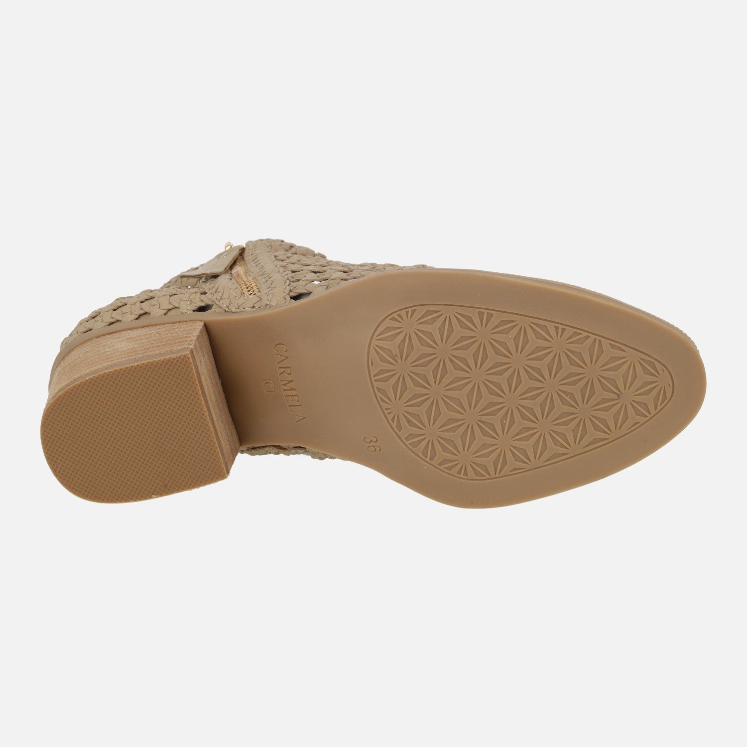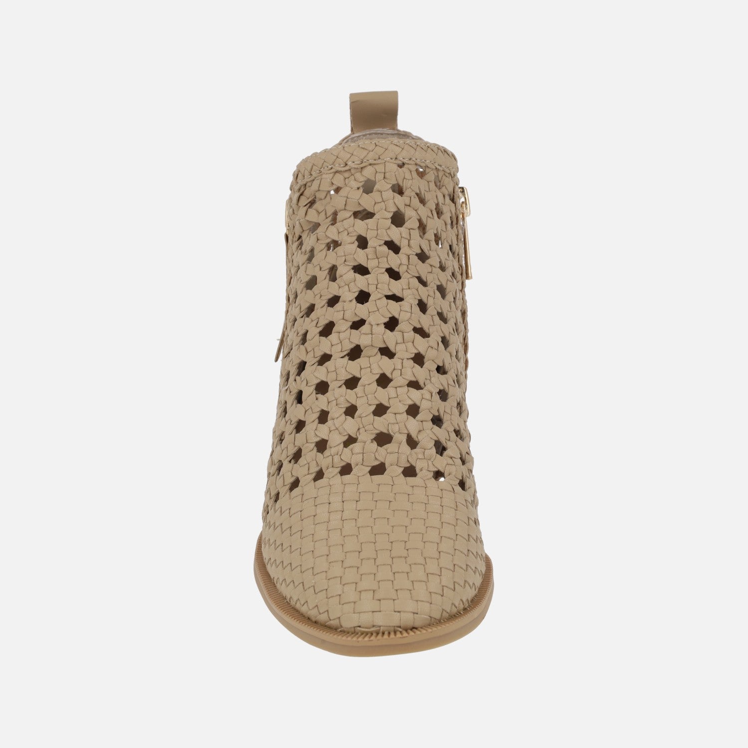 Beige braided ankle boots with zipper detail