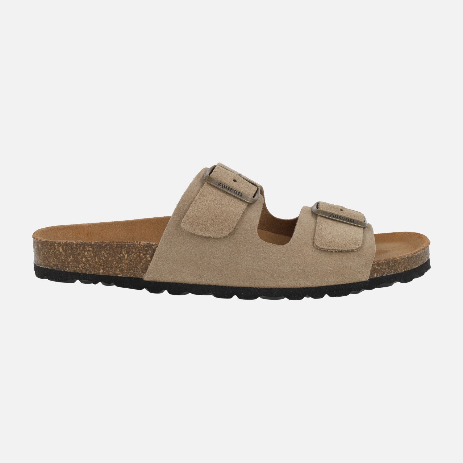 Sandals for men from the Autenti brand model 3195 taupe. Bio style sandals made of taupe suede leather. Adjustable buckles. Leather-lined interiors. Synthetic outsole, cork midsole.