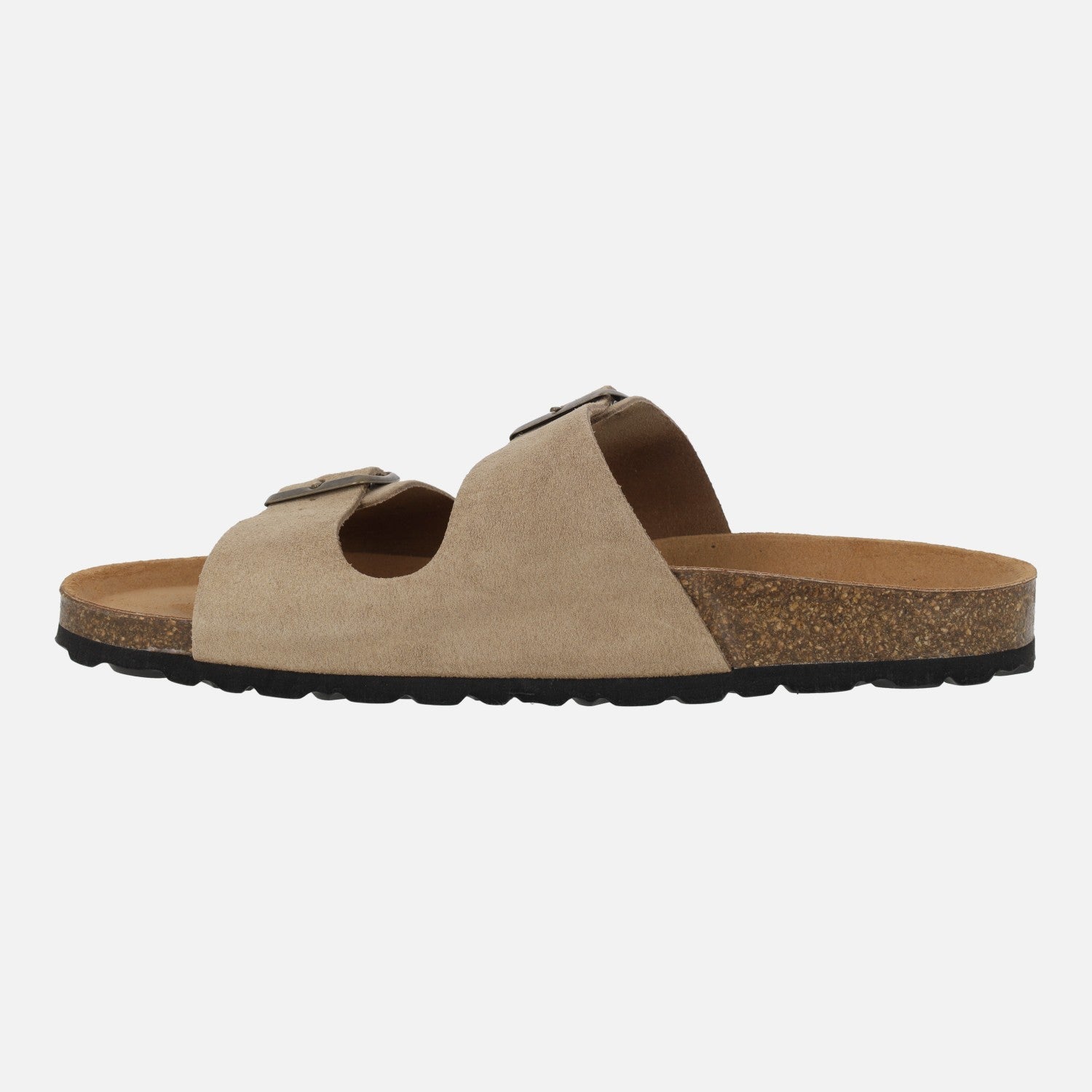 Bio sandals for men in taupe suede with two buckles