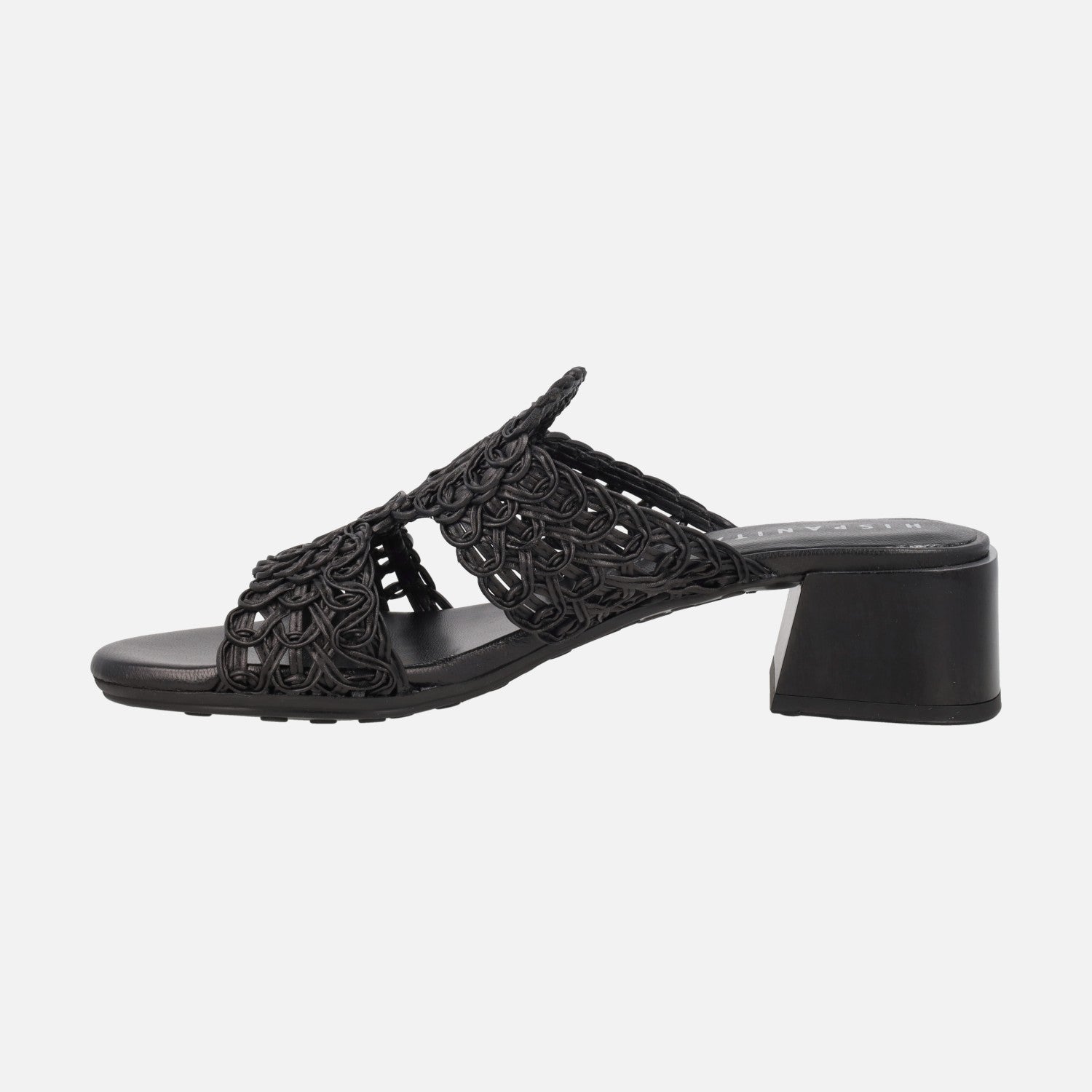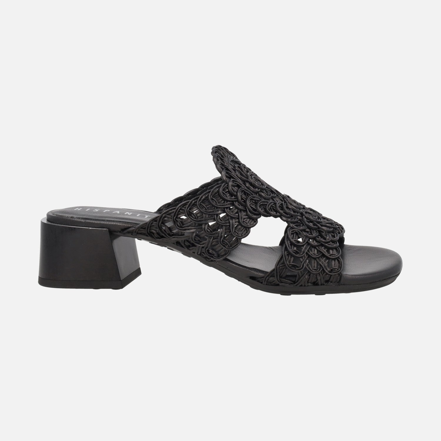 Beautiful braided mules from the Hispanitas brand model HV264602 Cordela black. Sandals made of leather and braided fabric in color Black. Microfiber interior. Synthetic outsole with 4 cm high heels.