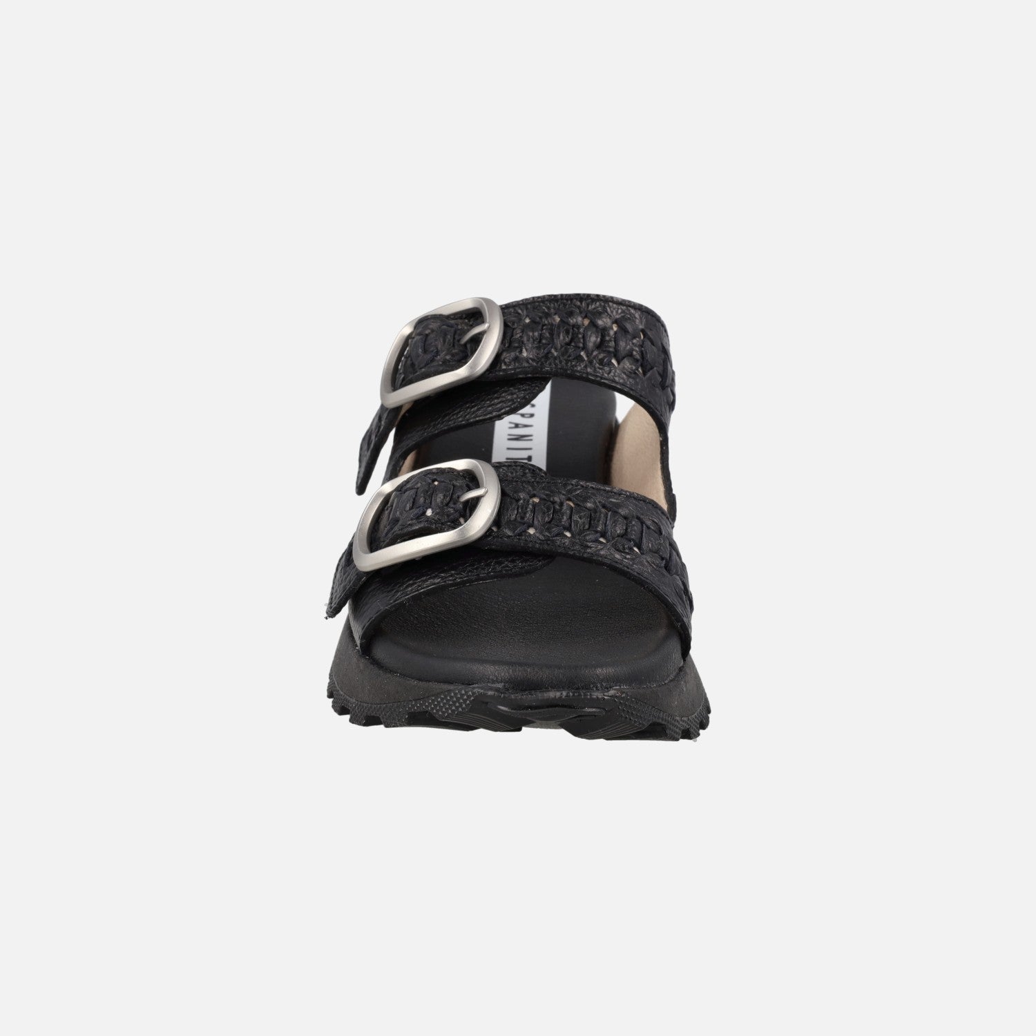 Ambar Black leather sandals with two silver buckles