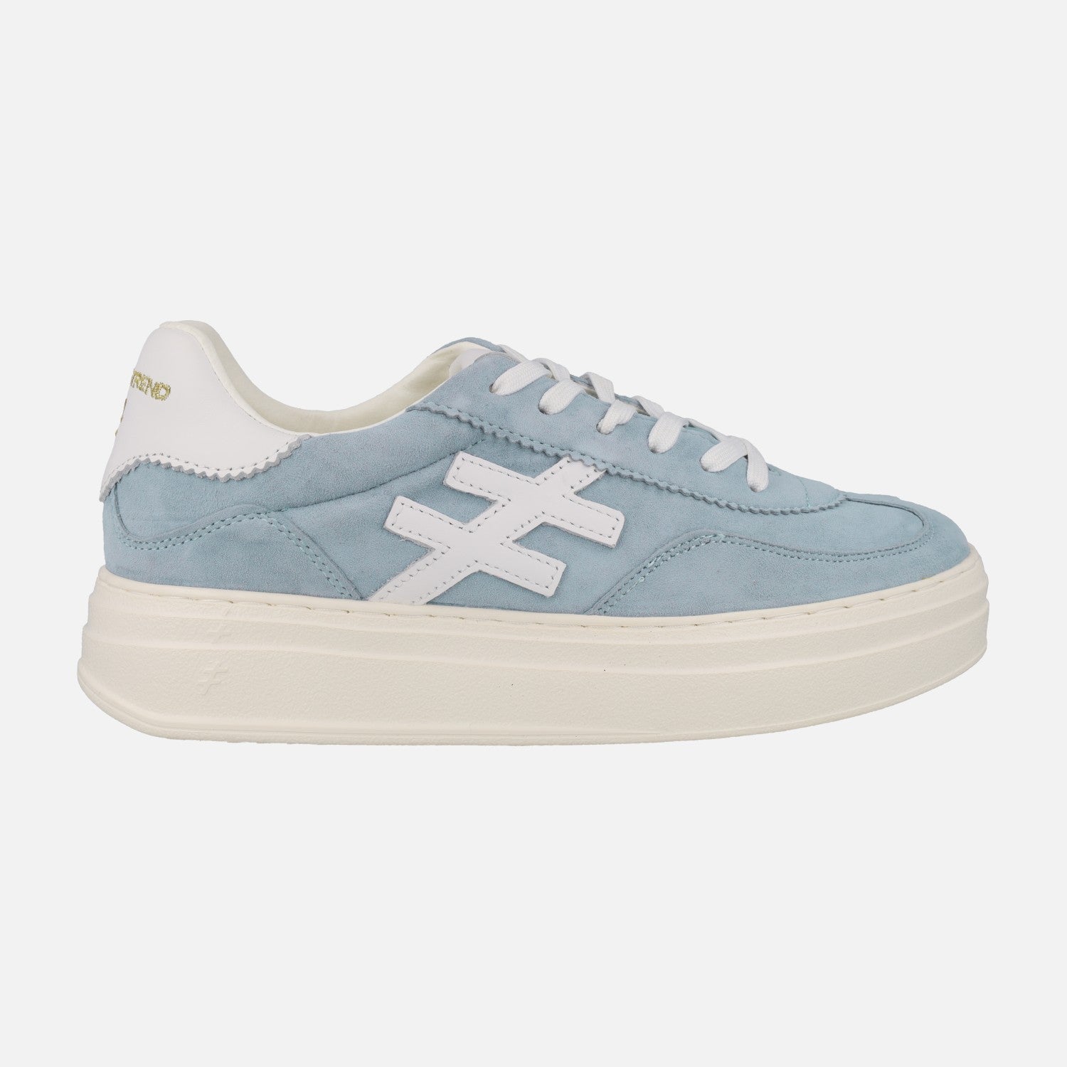 Women's Sneakers Another Trend Athletic Model A0351129 in Baby Silk Sky. Sneakers made in light blue suede leather, with logos contrasted in white leather, as well as the heel. Textile interior. Lace -up closure. Removable insoles. Rubber platform 4 cm back height (3 cm front).