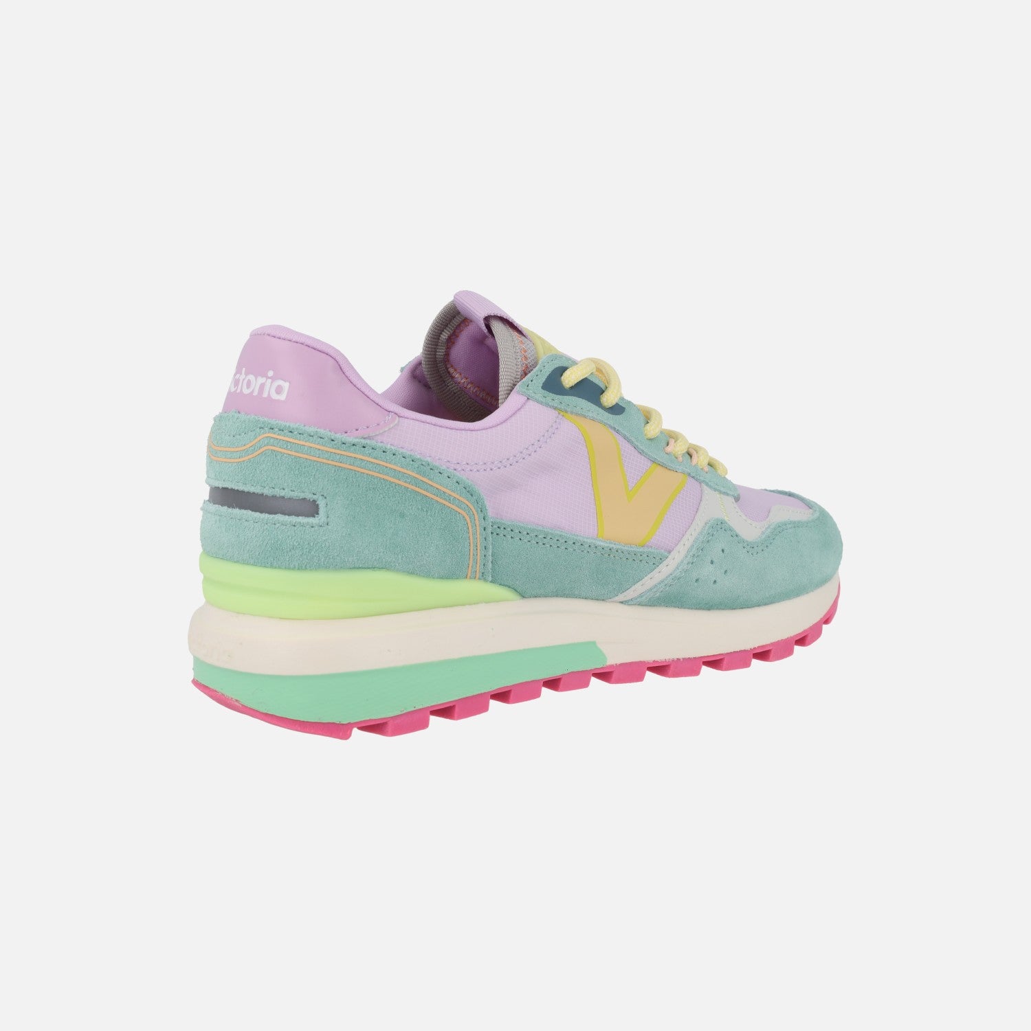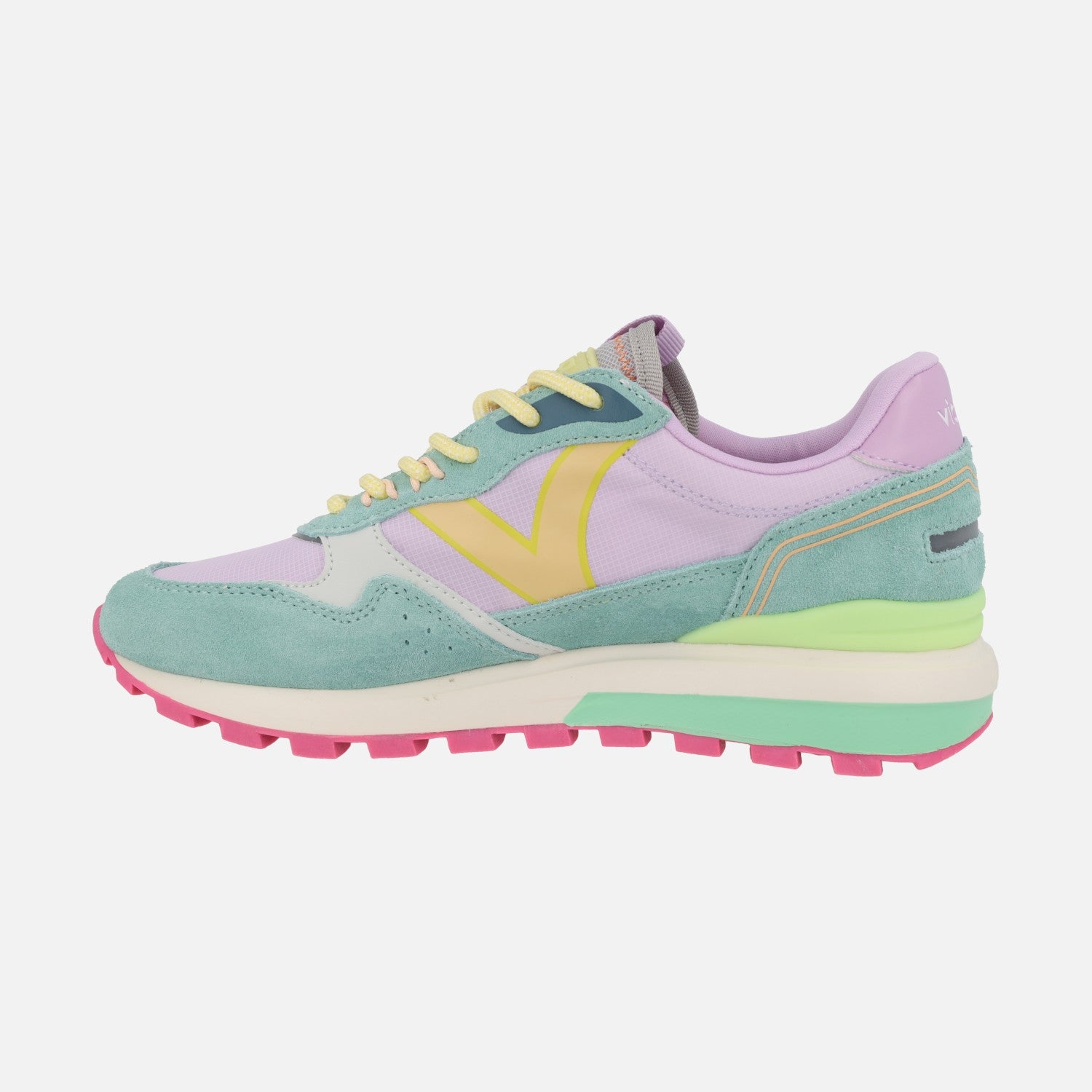 Sneakers from the Victoria brand, model 1156115 Luna multicolored technical nylon and suede in lilac combination. Sports shoes made of polyester fabric, leather and synthetic details. Closure of textile laces. Textile interior, removable padded insoles. Light, synthetic outsole, approximately 3.2 cm high at the back (2 cm front).