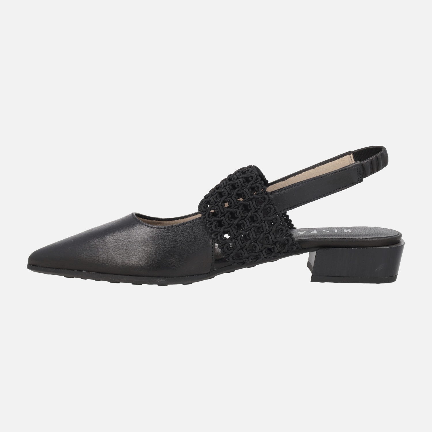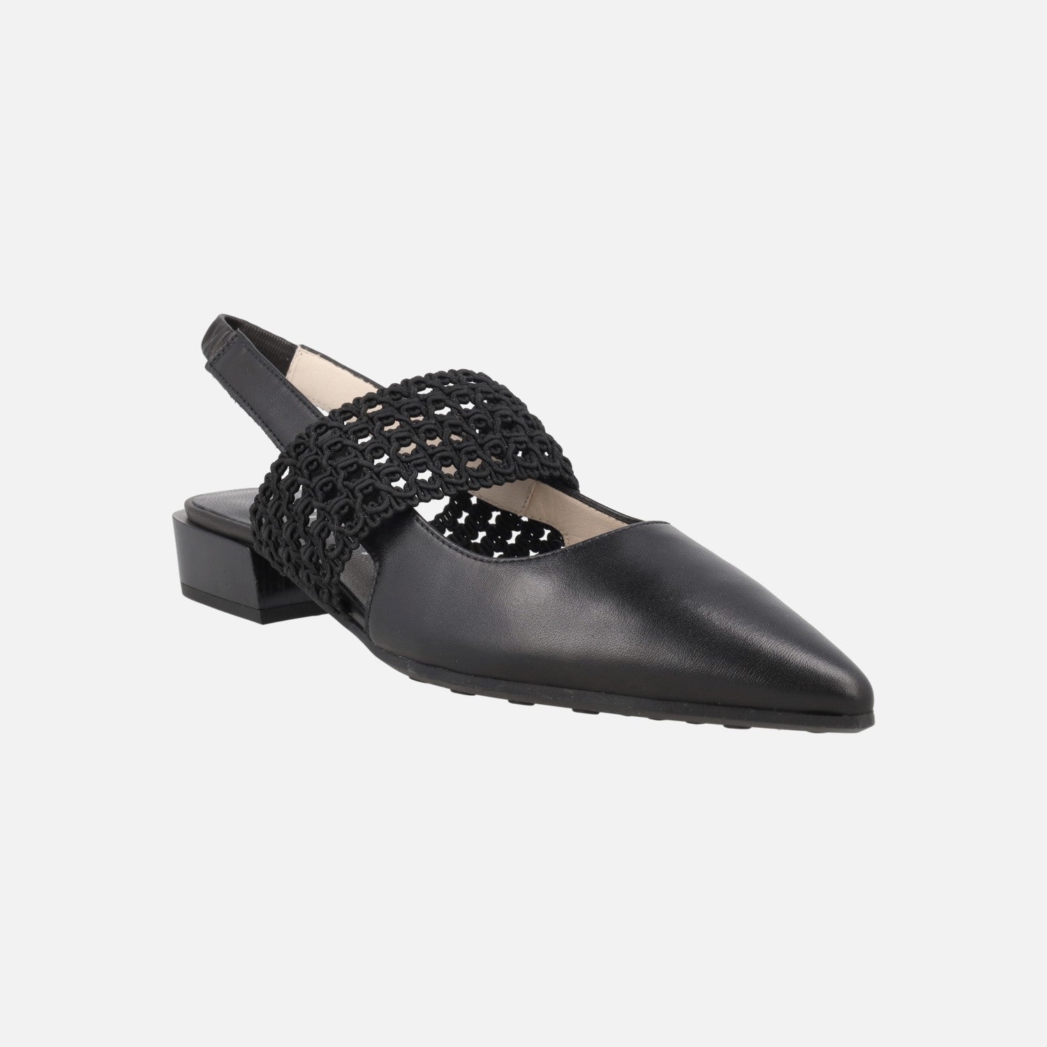 Beautiful slingback leather shoes from the Hispanitas brand model HV264778, available in Black and in almond (camel). Pointed-toe ballerinas, with crochet-style elastic band. Elastic heel strap for better fit and support. Leather-lined interiors. Synthetic outsole. Low heels almost 3 cm high. TRIFLOW system with triple padding for great comfort when walking.