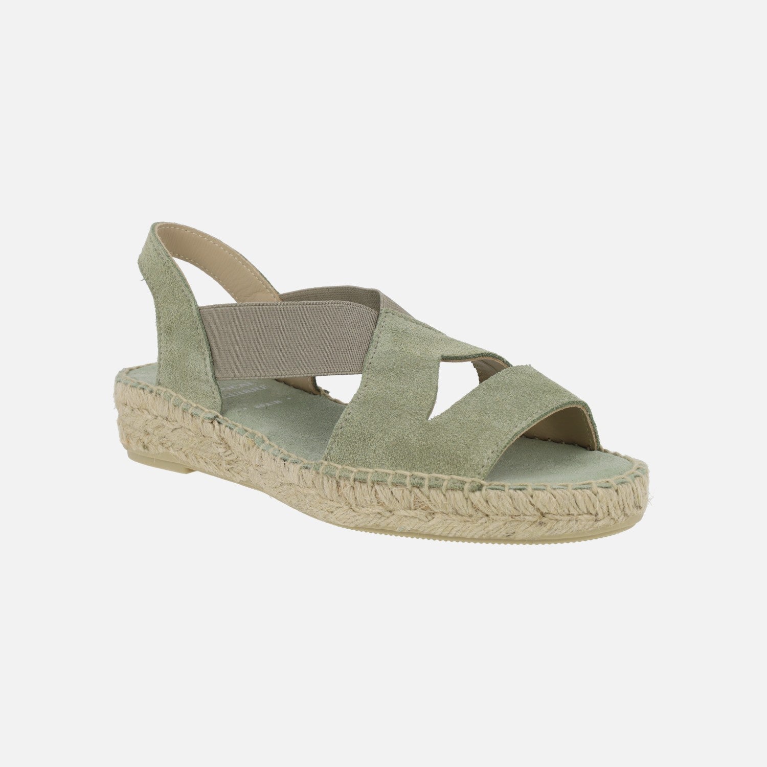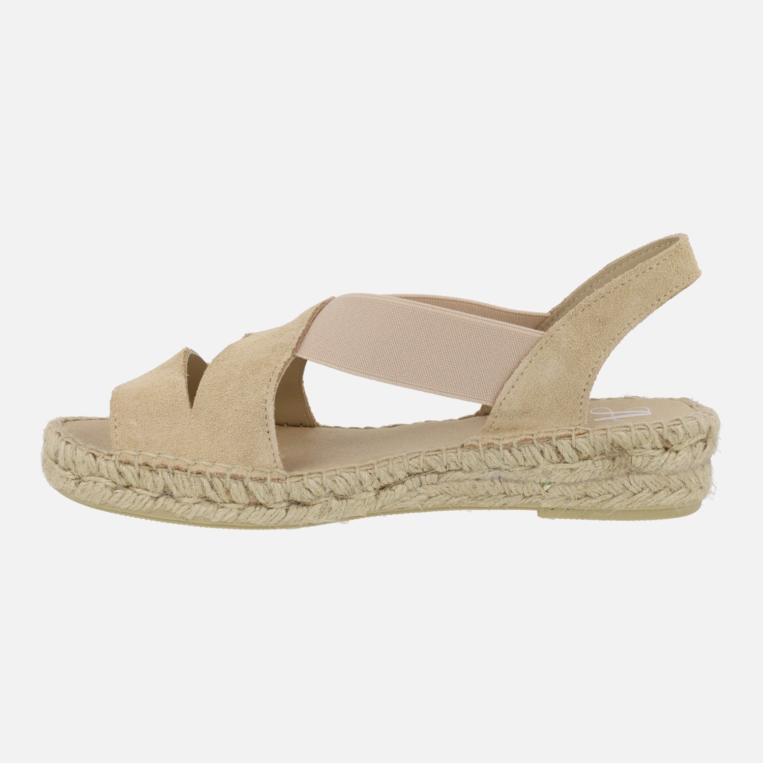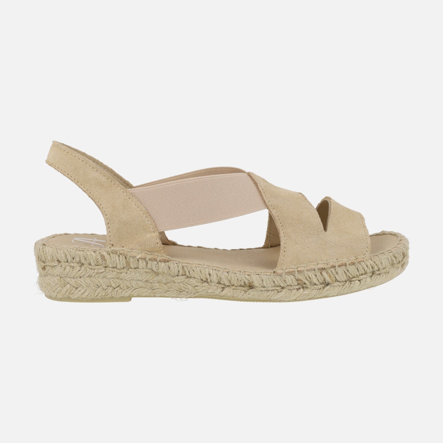 Alpargatas de esparto para mujer de la marca española Juncal Aguirre modelo 2714, disponibles en avellana (beige ) y rosmari (verde kaki). Zapatillas elaboradas en piel serraje con elásticos laterales para una óptima sujeción al pie. Interior mixto de piel y tejido. Cuñas bajas de esparto natural, con una altura trasera de 3,5 cms (2 cms parte delantera). Made in Spain.