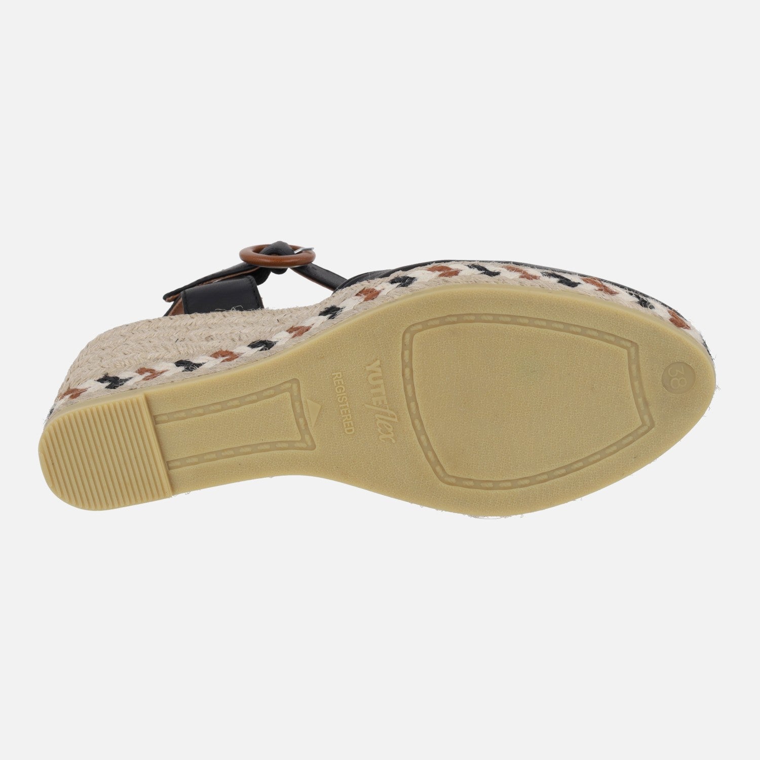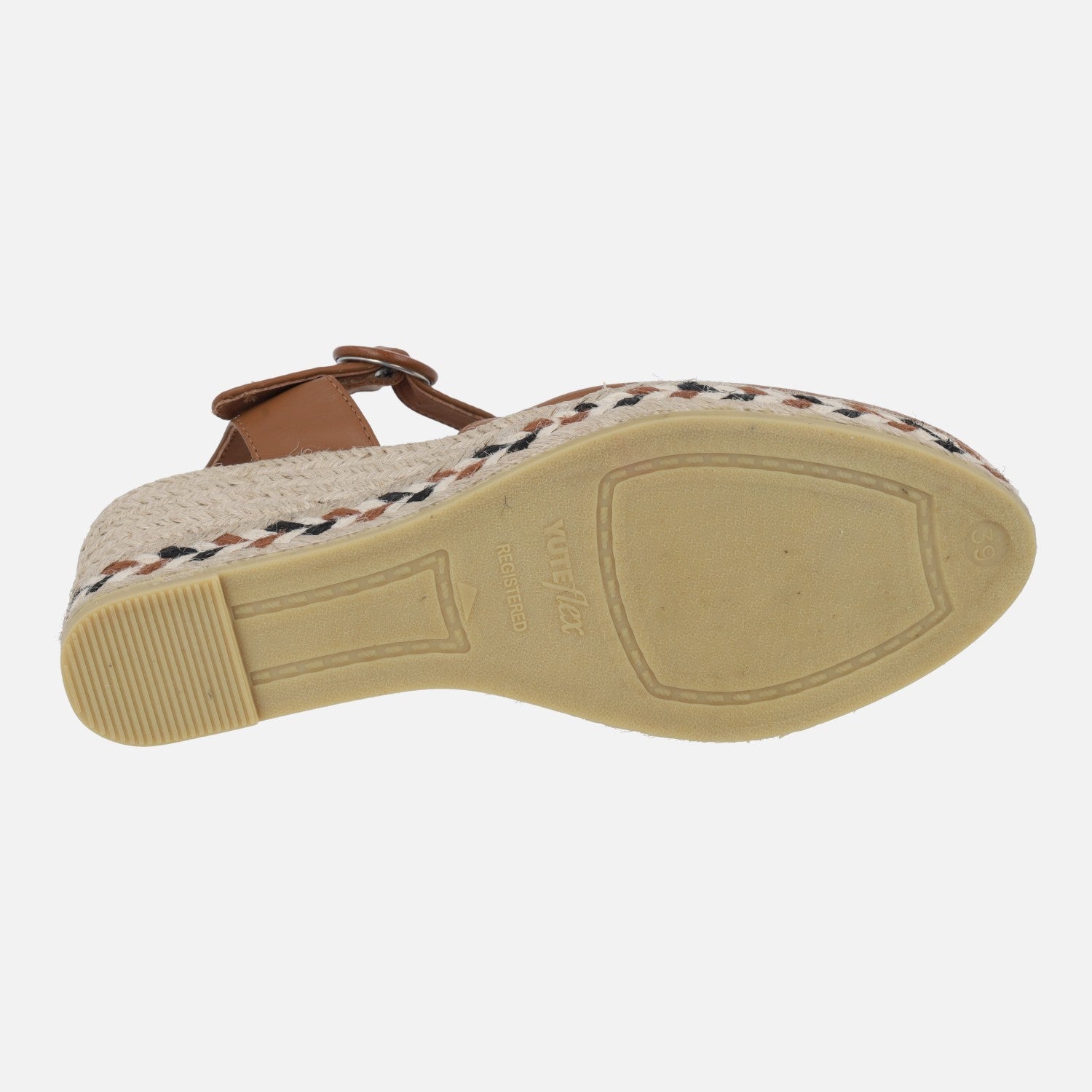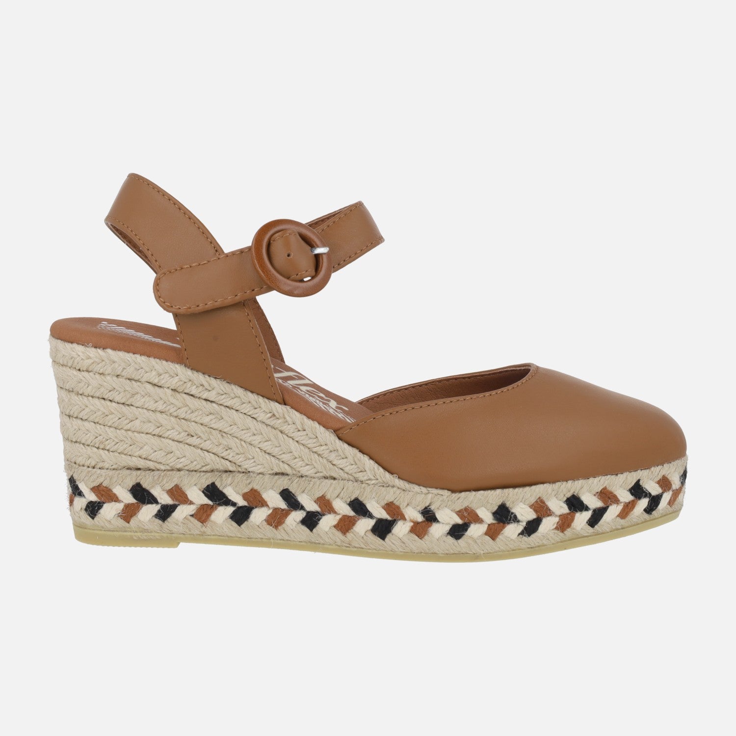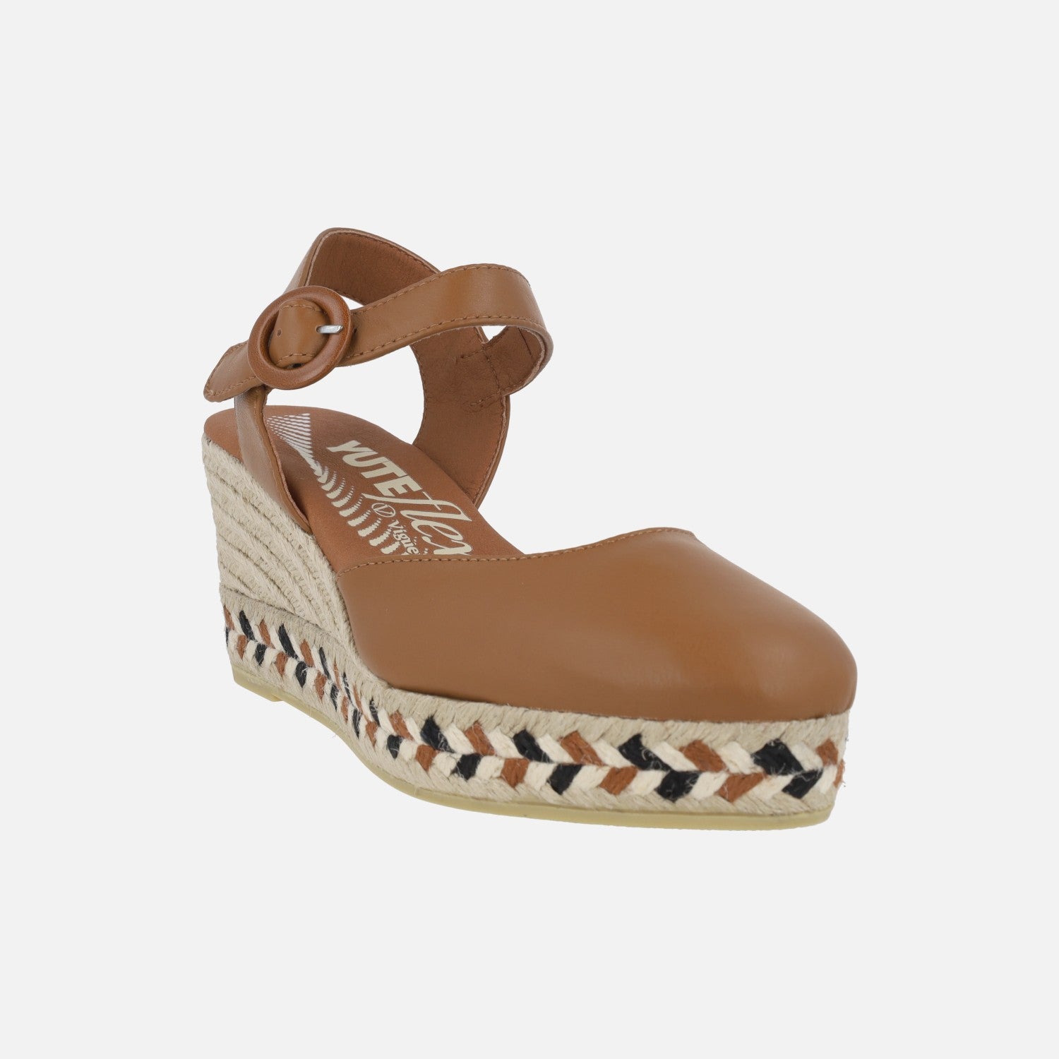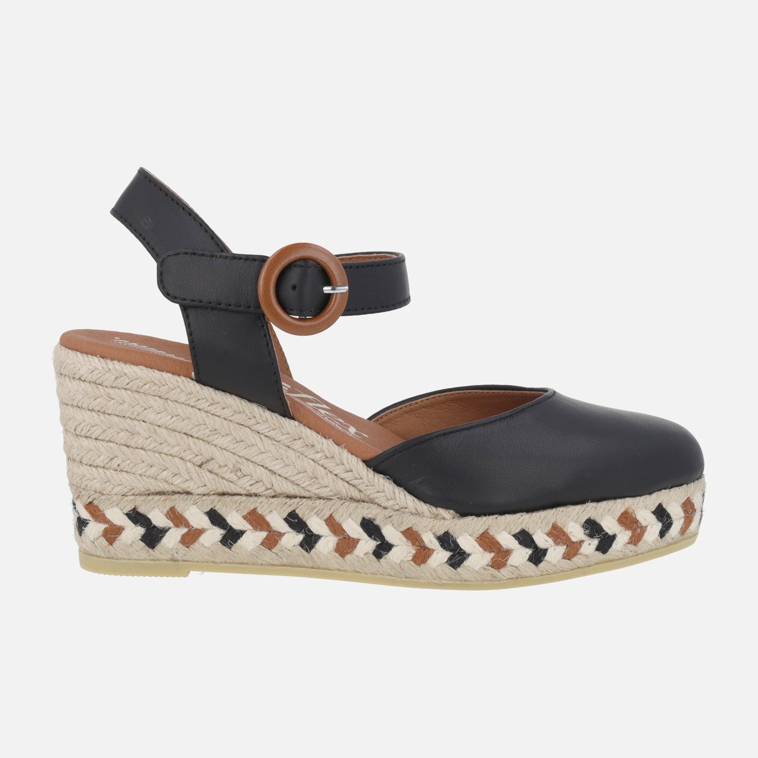 Alpargatas valencianas de piel con hebilla y cuña Yuteflex