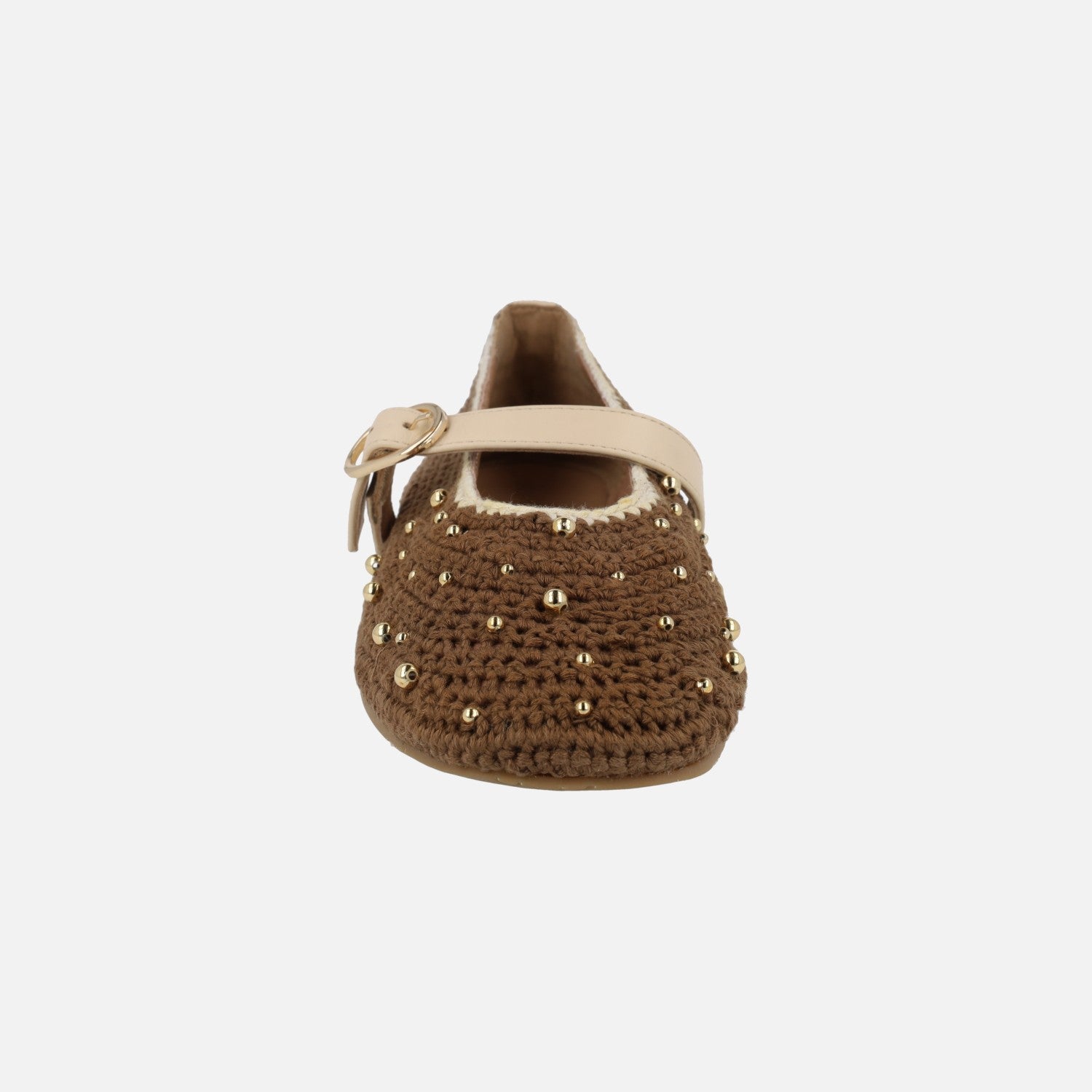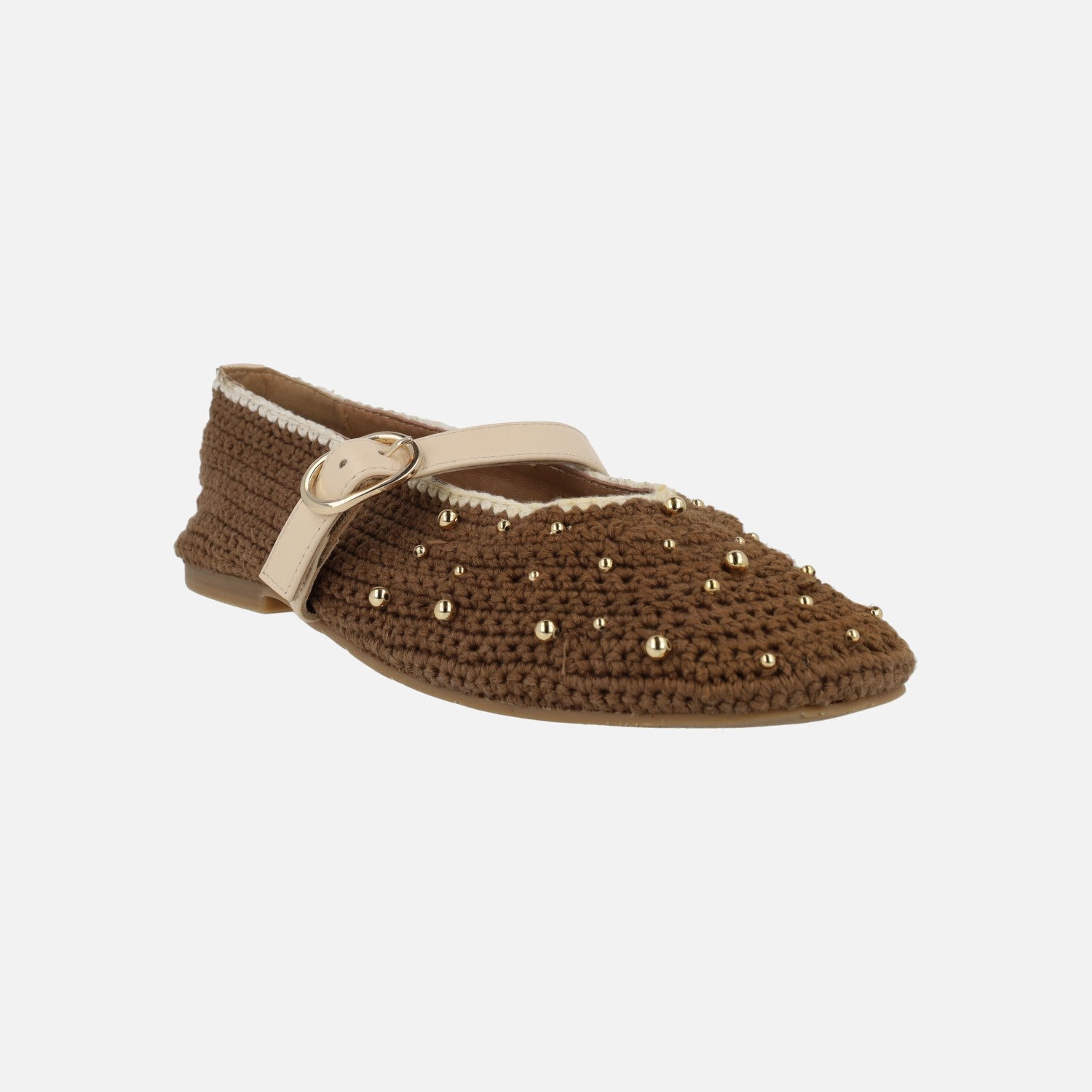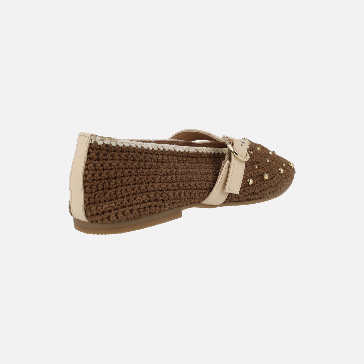 Bailarinas marrones de crochet con cuentas doradas Manyoni