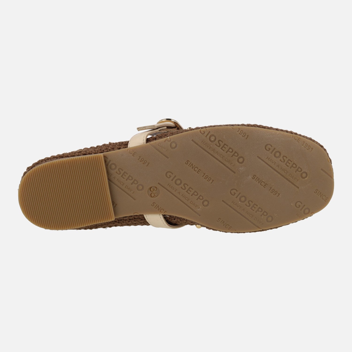 Preciosas bailarinas de crochet marca Gioseppo modelo Manyoni 78190 Marrón. Bailarinas de horma redondeada elaboradas en tejido crochet marrón con detalle de cuentas doradas. Tira de piel beige cruzando el empeine, ajustable con hebilla. Forro y planta de piel. Suela sintética, plana, de apenas 1 cm de altura (TPR flexible).