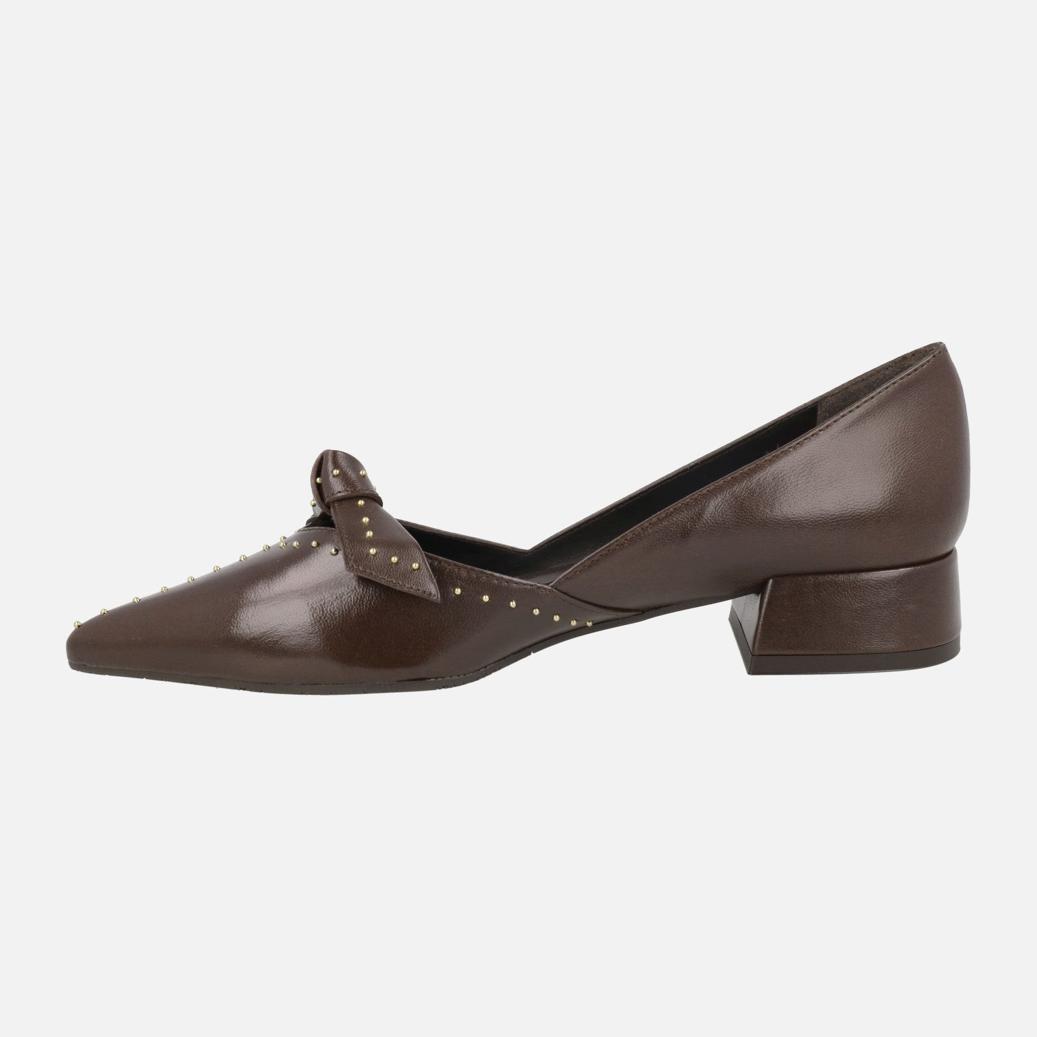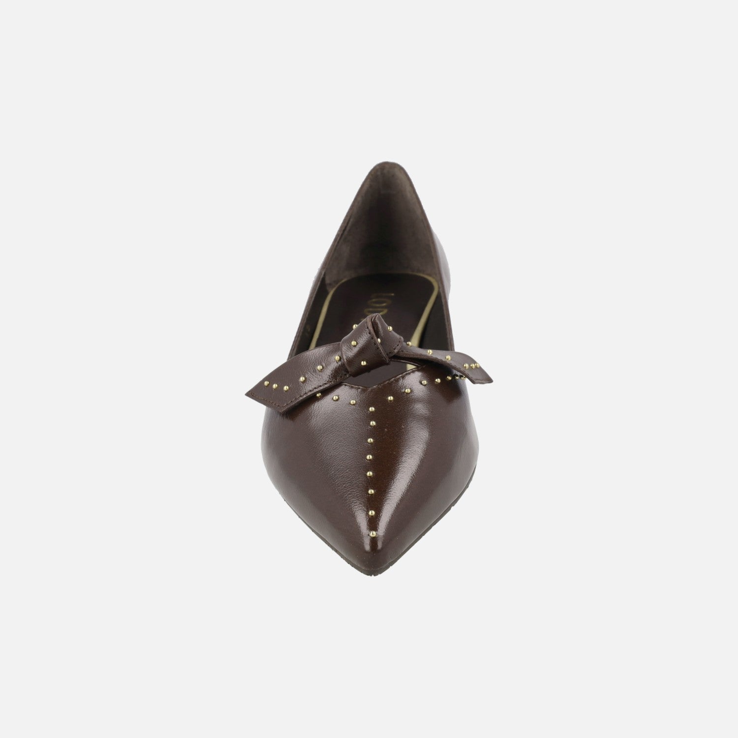 Bailarinas marrones de piel con lazo y tachas Amistad