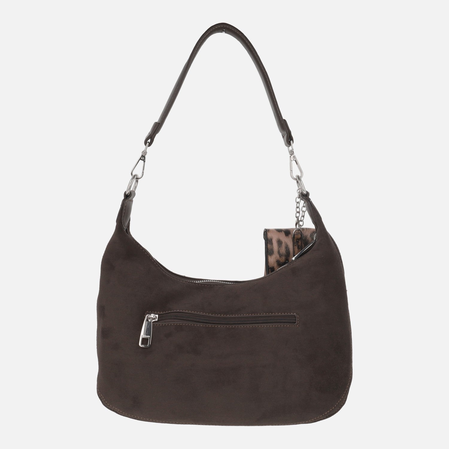 Bolso marrón Glen en tejido efecto ante con monedero en print leopardo
