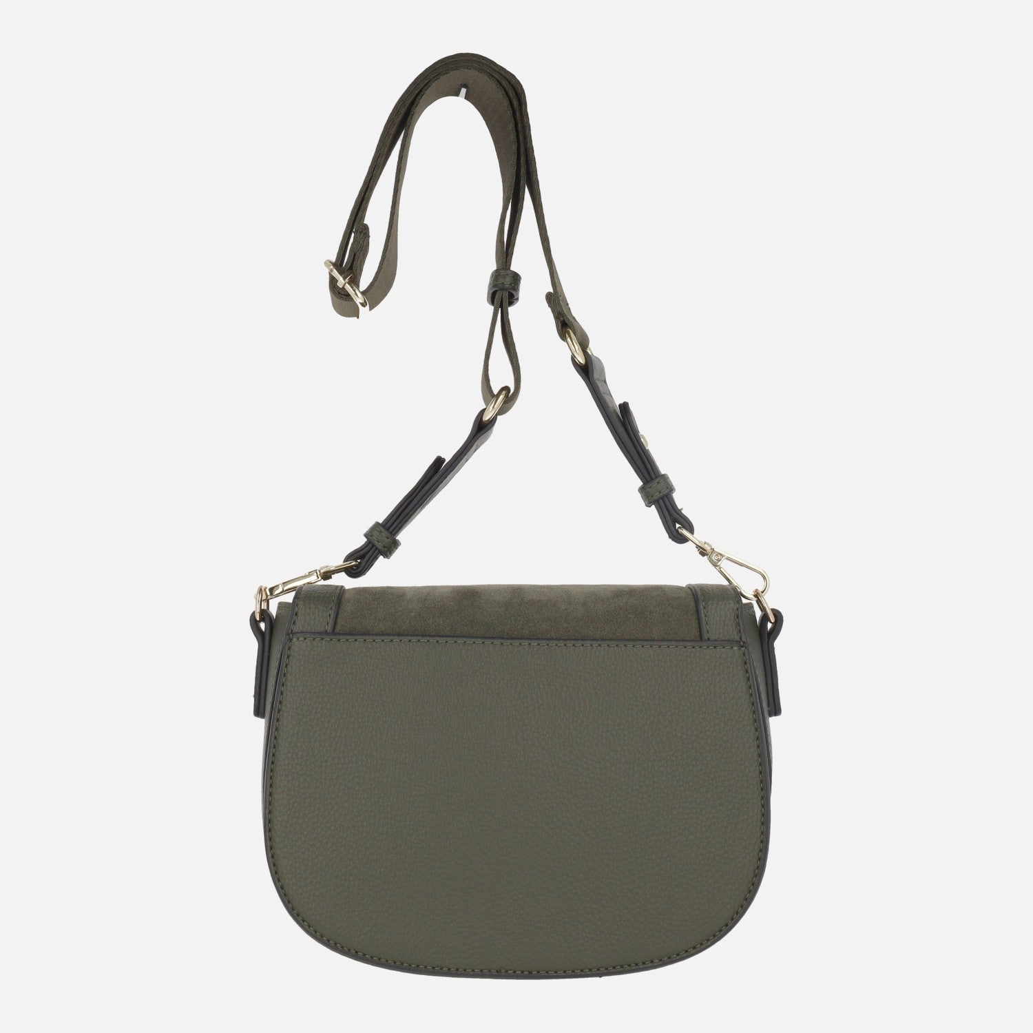 Bolsos bandolera con tapa en combinado de piel y sintéticos