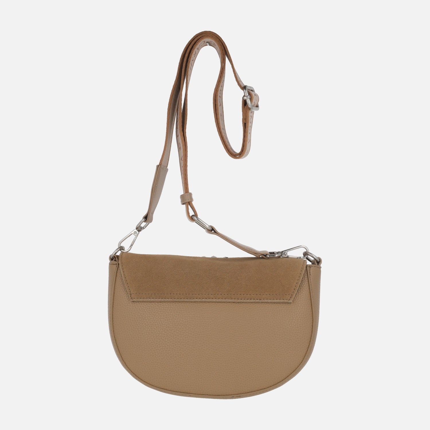Bolsos bandolera con tapa en serraje camel y detalles de pedrería