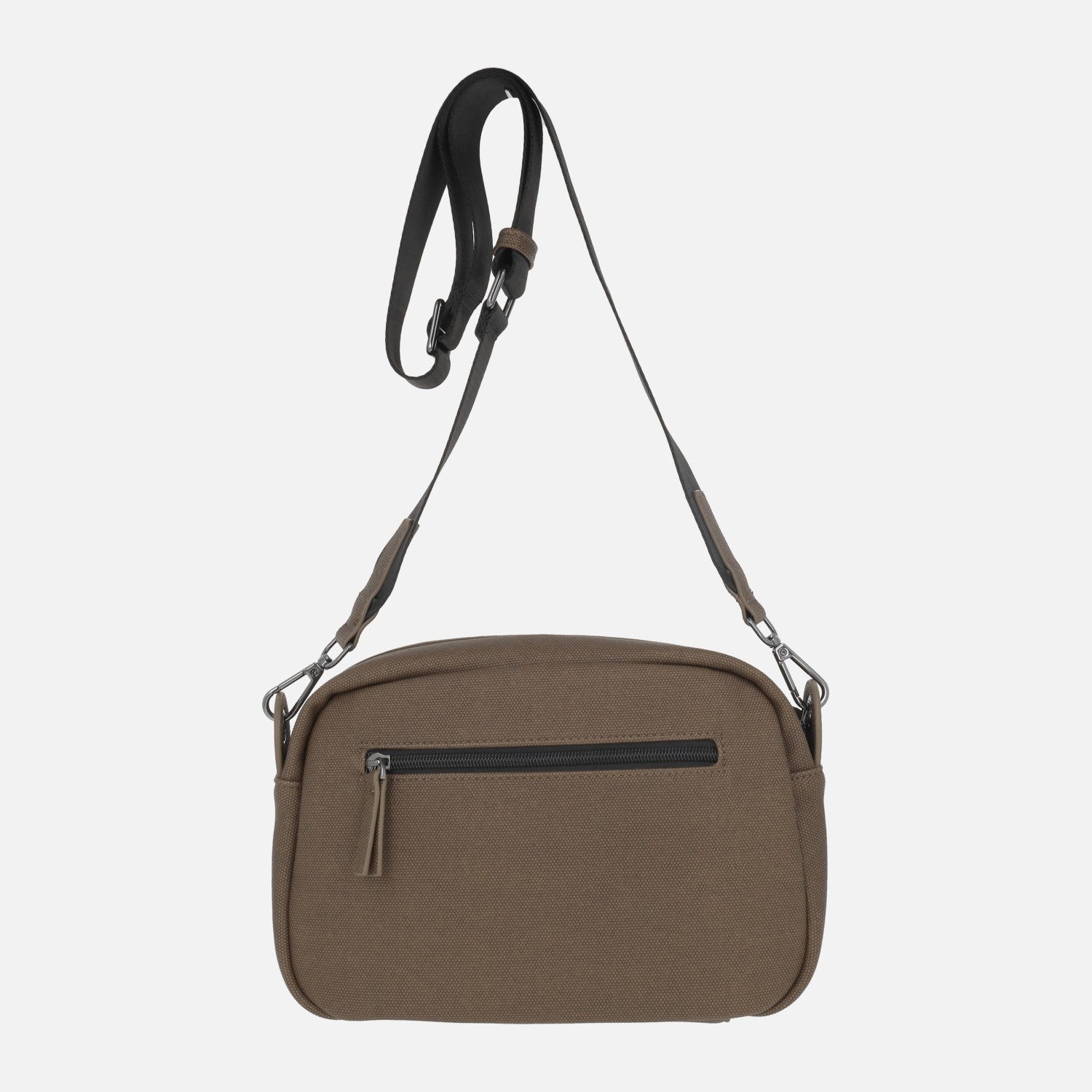 Bolsos bandolera de la marca Matties modelo 21019 línea Ember. Bolsos elaborados en polipiel efecto lona, con cierre central de cremallera. Dos bolsillos delanteros y uno trasero todos con cremallera. Interior textil con dos bolsillos, uno con cremallera. Asa bandolera ajustable con hebilla. Medidas: 17 cm de alto x 26 cm de ancho x 10 cm de fondo.