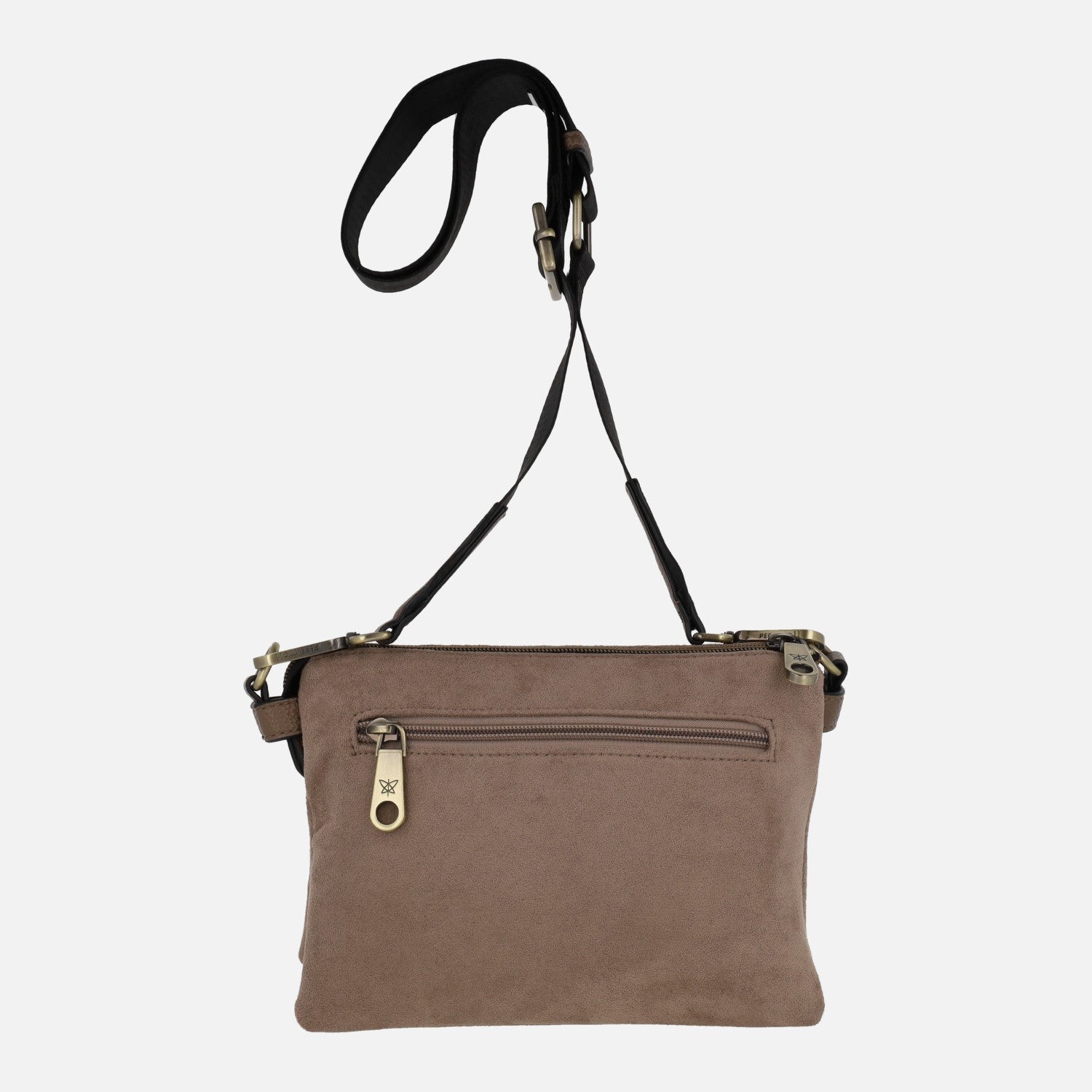 Bolsos bandolera en combinado taupe con triple compartimento interior