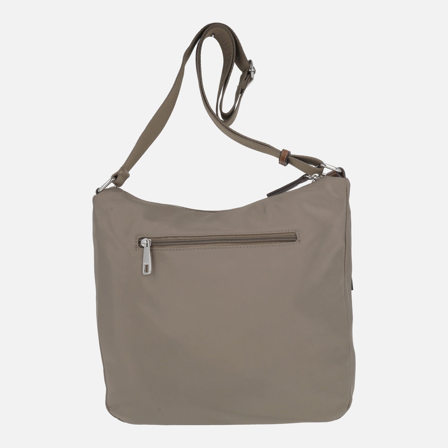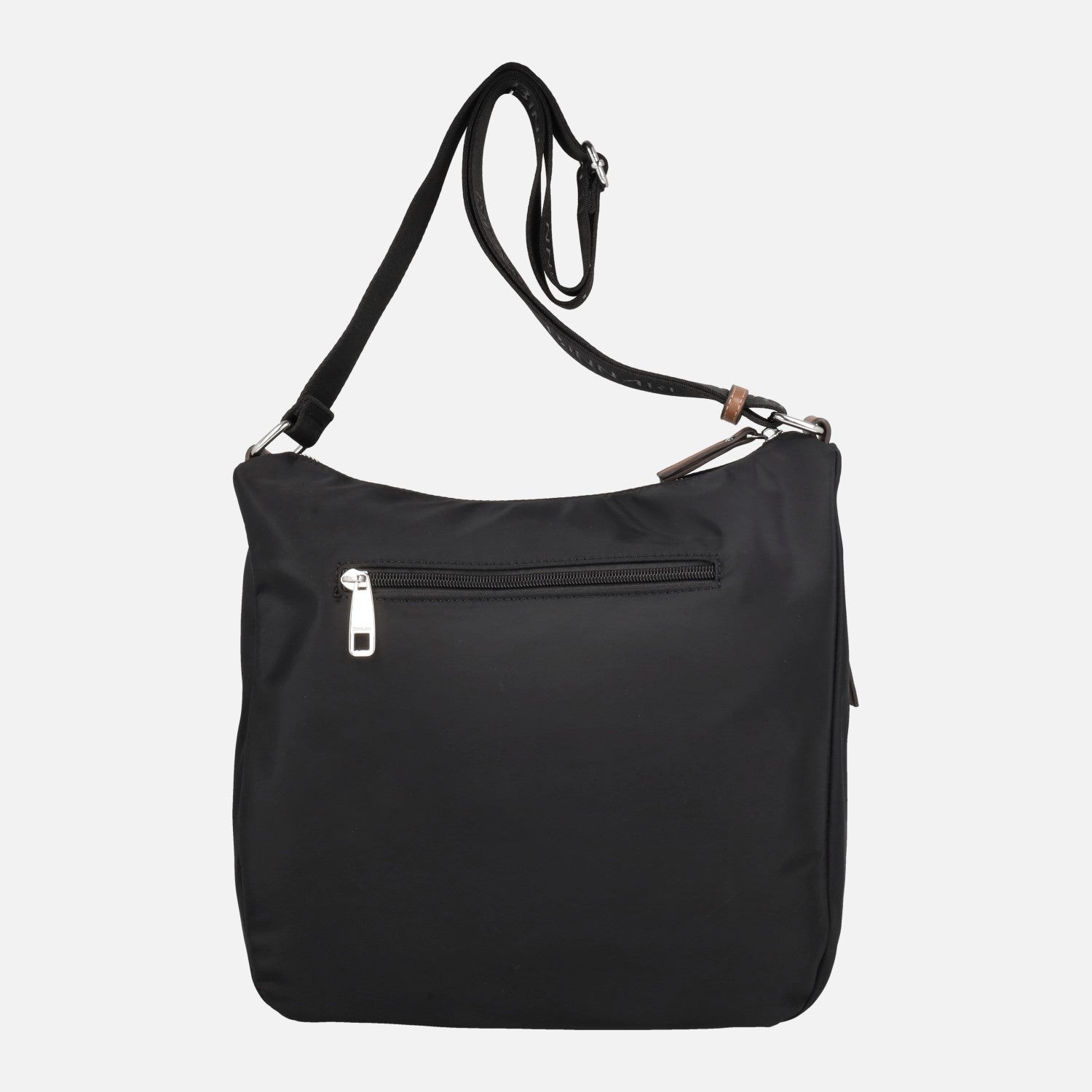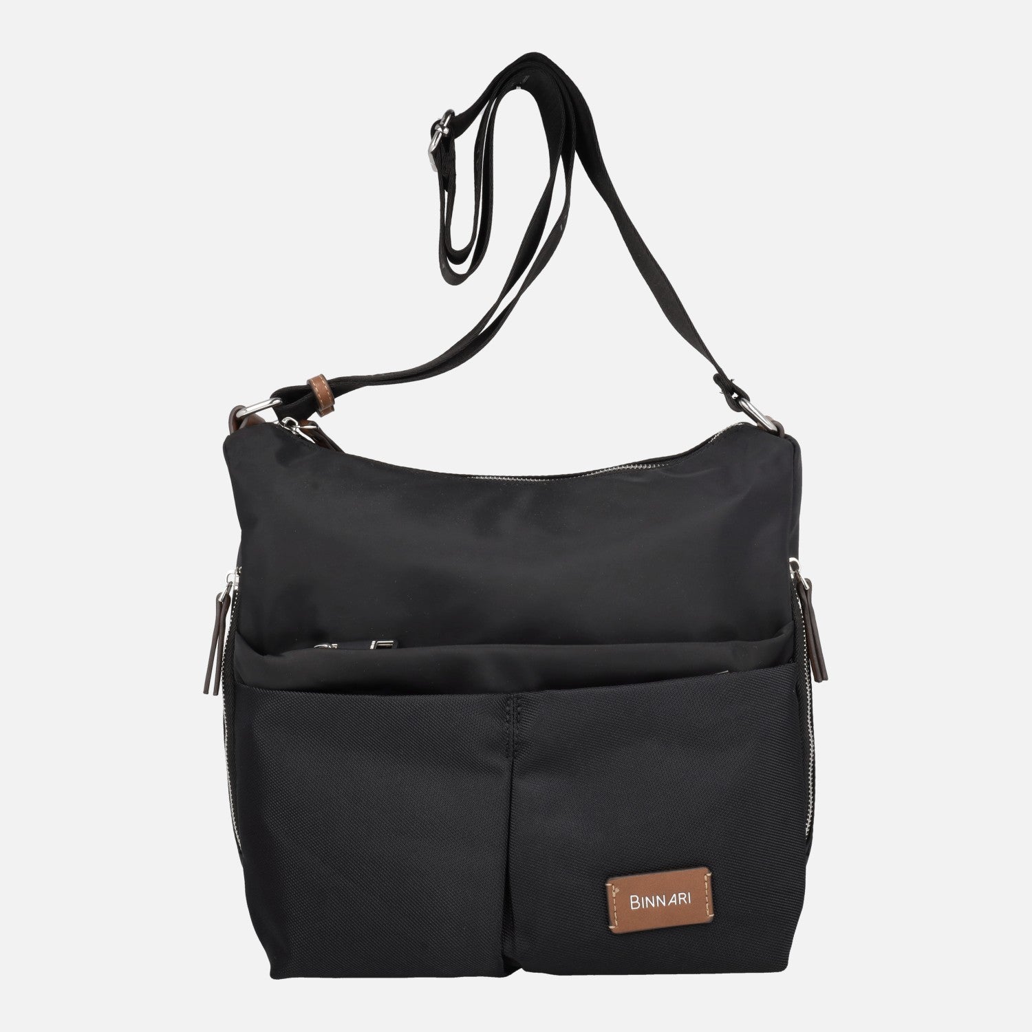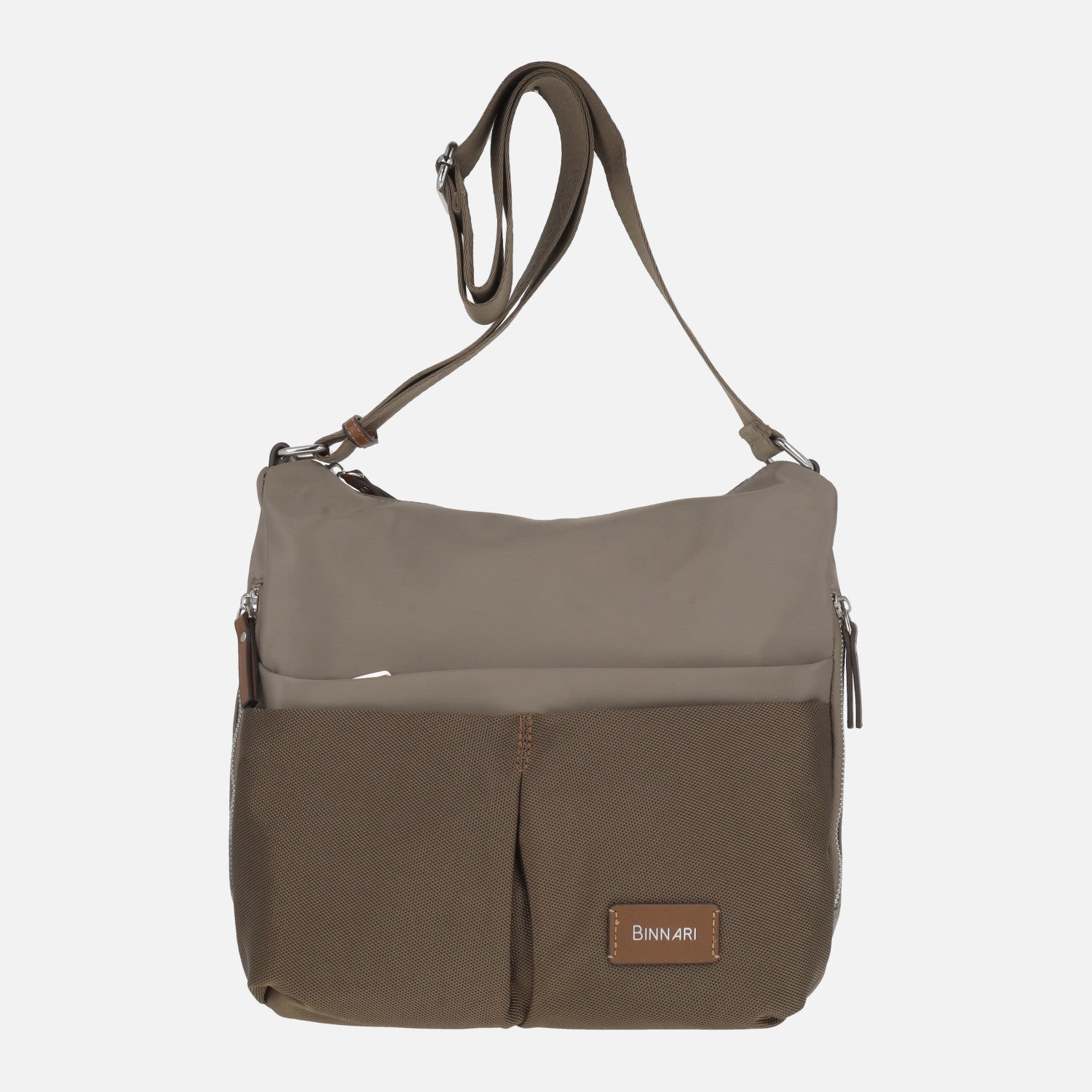 Bolsos bandolera Binnari Louise 20852, disponibles en negro y en taupe. Bolsos con exterior textil. Cuentan con dos bolsillos delanteros, dos laterales y uno trasero con cremallera. Cierre principal con cremallera. Interior textil con dos bolsillos, uno con cremallera. Asa bandolera ajustable con hebilla. Medidas: 28 cm de alto lateral x 26 cm de alto central x 29 cm de ancho x 10 cm de fondo.
