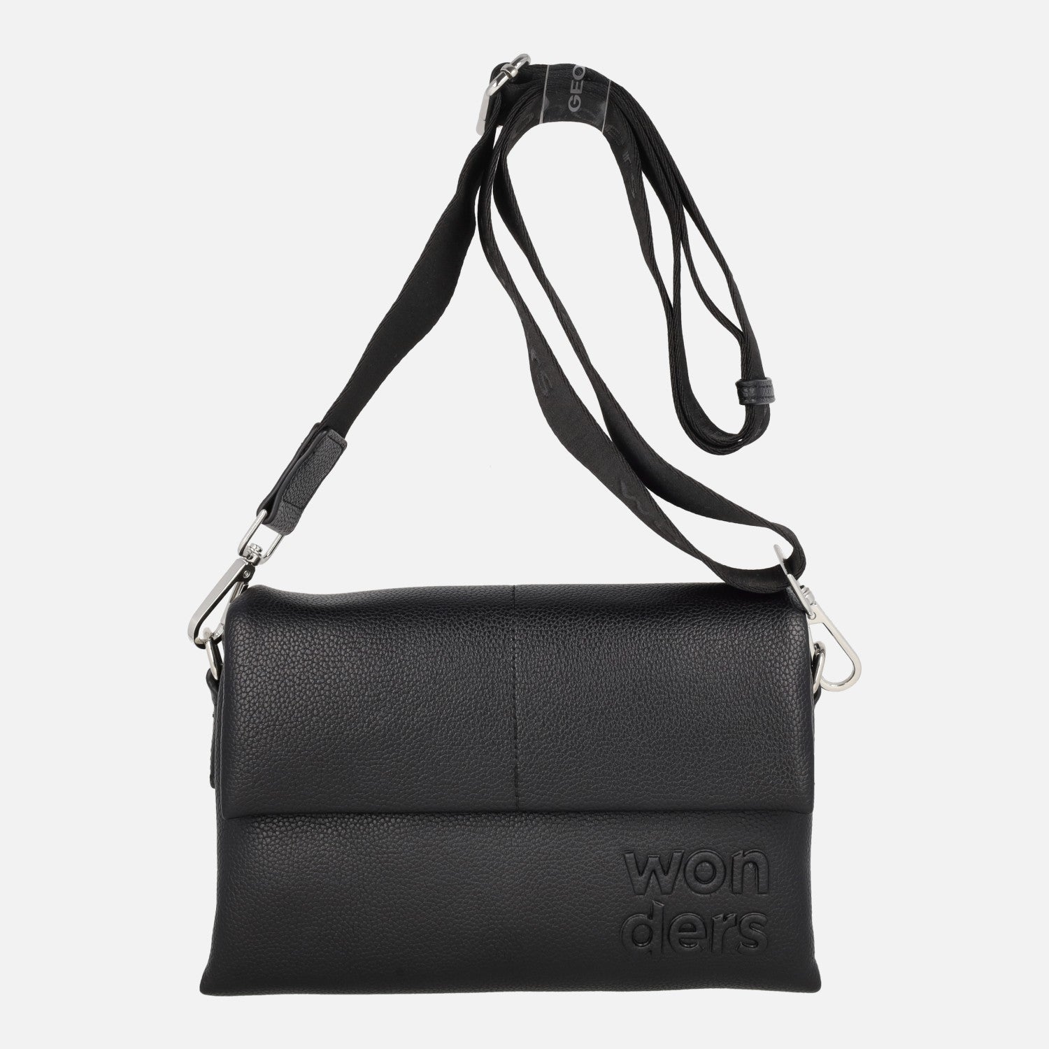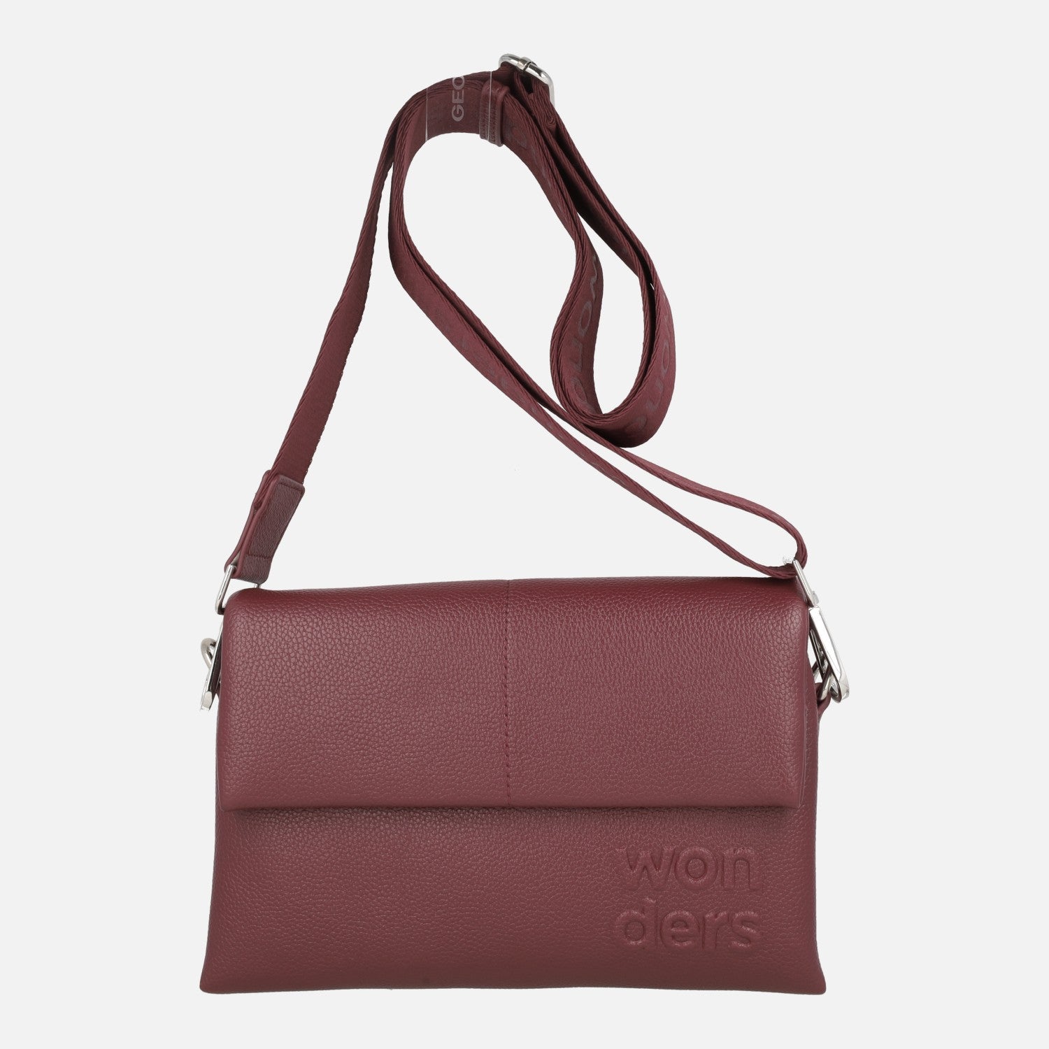 Bolsos bandolera de la marca Wonders modelo WB-54020 disponibles en negro y en vino. Bolsos elaborados en materiales sintéticos (100% poliuretano) efecto piel. Logo de la marca en la parte delantera. Bolsillo trasero con cremallera.  Cierre principal de solapa con dos broches imantados. Interior textil (100% poliester) con dos compartimentos, uno de ellos con cremallera. Bolsillos interiores. Asa ajustable y extraíble, con una medida de 72 cm al hombro como máximo. Medidas: 15 cm de alto x 23 cm de ancho inferior x 21,5 cm de ancho superior x 4 cm de fondo. Disponibles en negro y en burdeos.