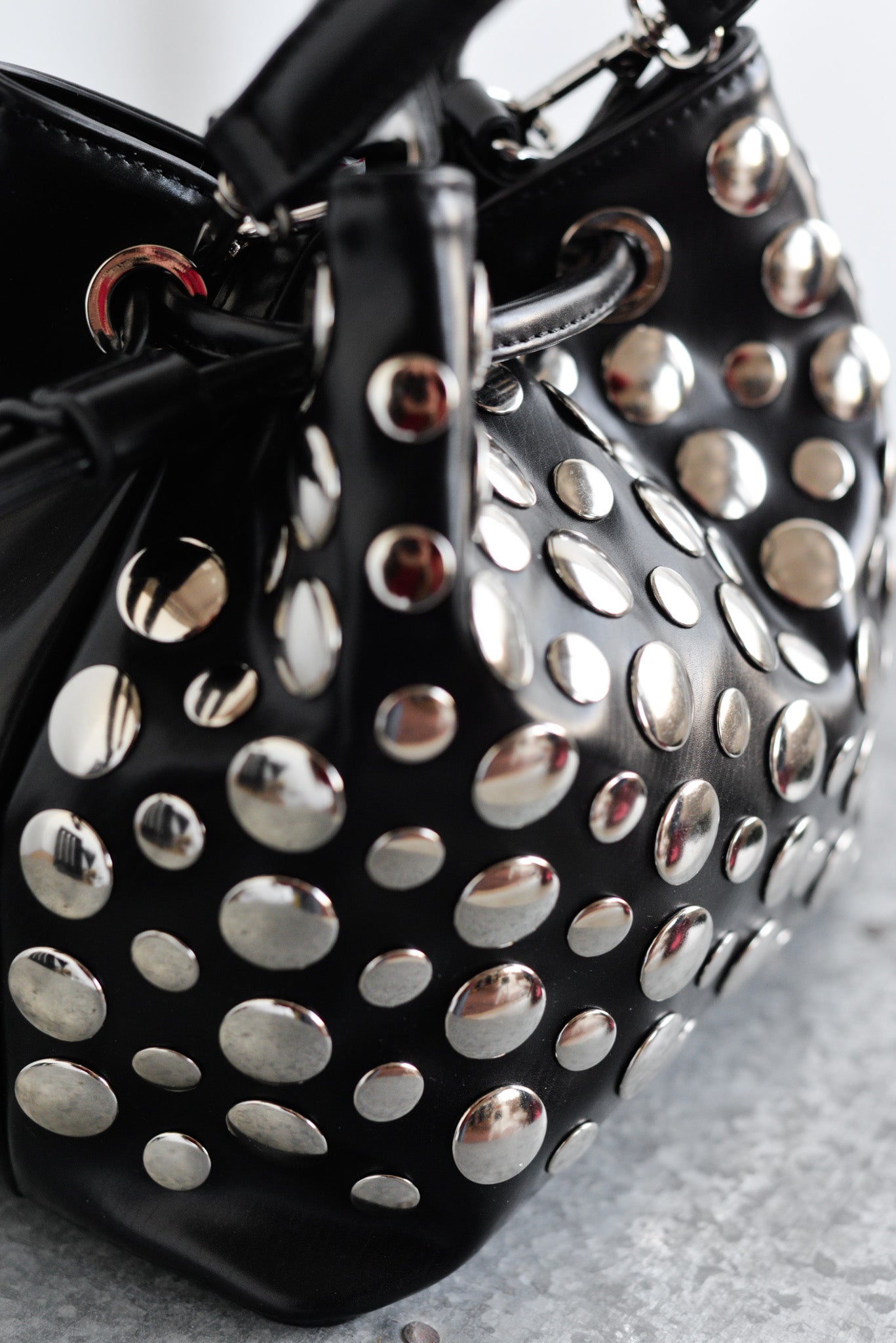Bolsos bombonera en negro con tachas grandes plateadas