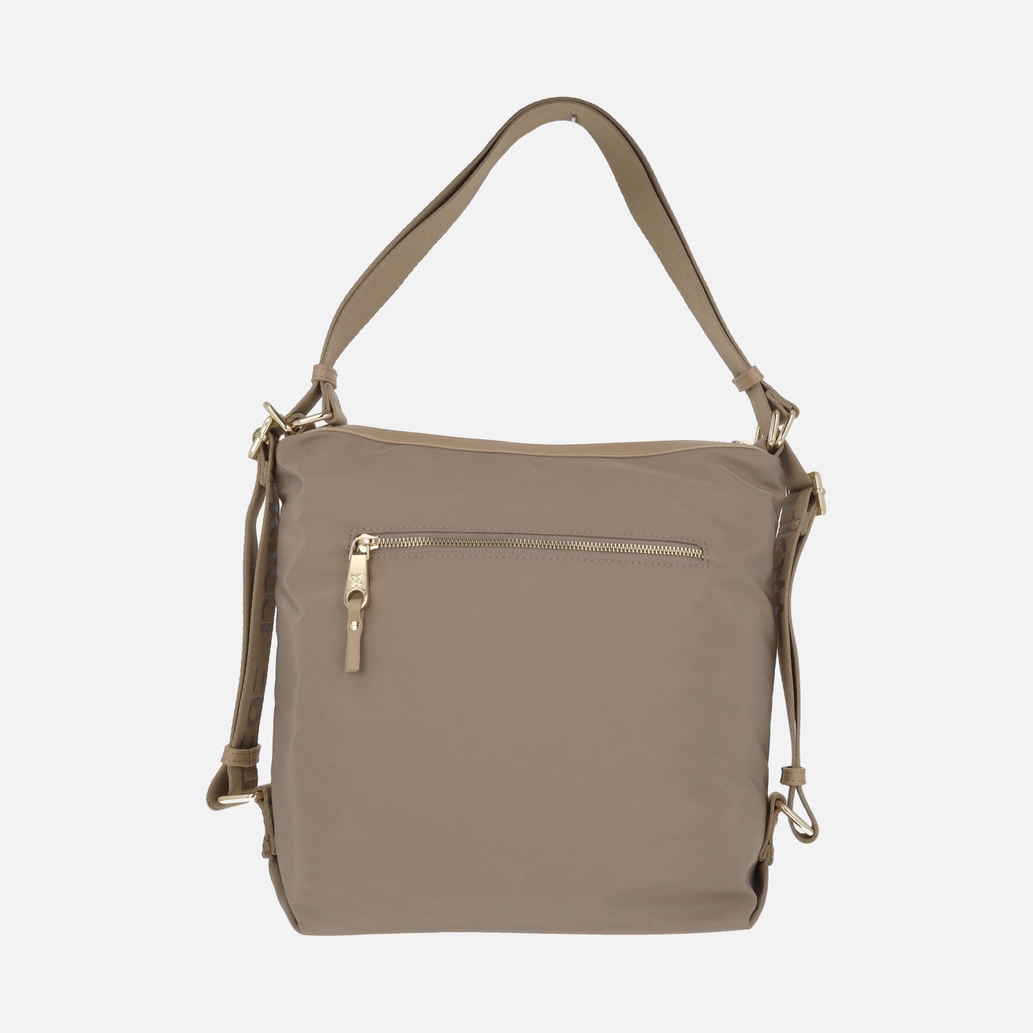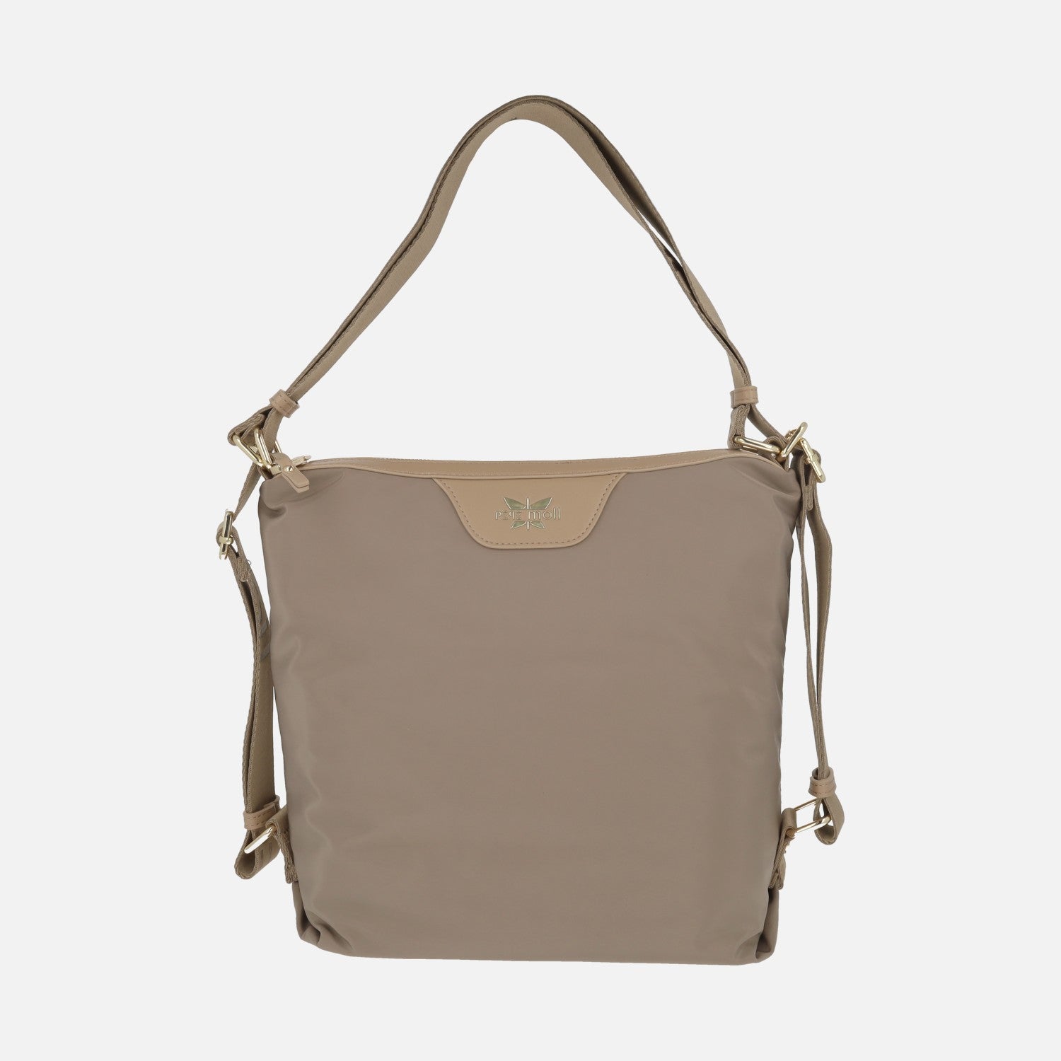 Elegantes bolsos modelo 261172 de la marca Pepe moll. Bolsos convertibles en mochila gracias a su sistema de asas. Elaborados en tejido taupe combinado con piezas sintéticas. Cierre principal de cremallera. Interior textil con dos bolsillos, uno de ellos con cremallera. Su sistema de asas permite colocarlo a modo de mochila o para llevarlo al hombro. Medidas aproximadas: 31 cm de alto x 27 cm de ancho inferior x 31 cm de ancho superior x 11 cm de fondo.