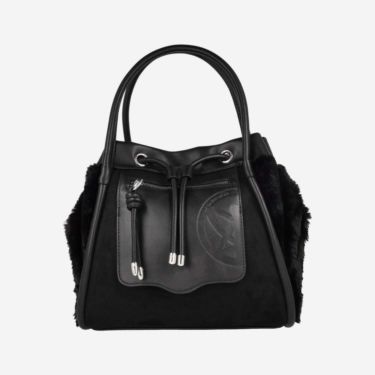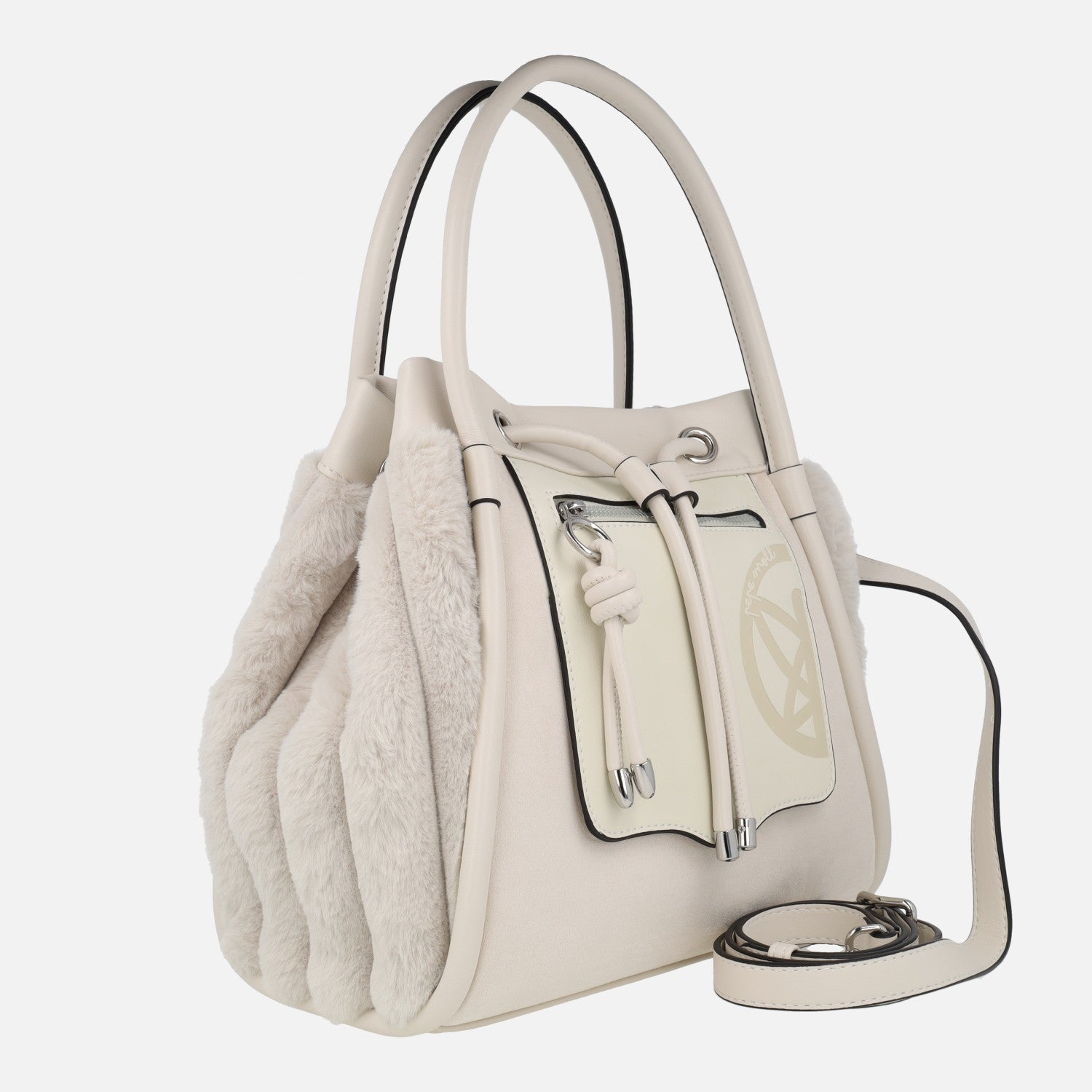 Preciosos bolsos nueva colección Pepe moll modelo 252402, disponibles en off (crudo), coffe (marrón) y black (negro). Bolsos con exterior sintético, efecto piel, y laterales en pelo suave. Bolsillos delantero y trasero con cierre de cremallera.  Cierre principal con broche imantado y tiras ajustables. Interior textil con dos bolsillos, uno de ellos con cremallera. Dos asas para llevar al hombro y además un asa bandolera ajustable con hebilla. Medidas: 26 cm de alto x 23 cm de ancho superior x 28 cm de ancho inferior x 11,5 cm de fondo.