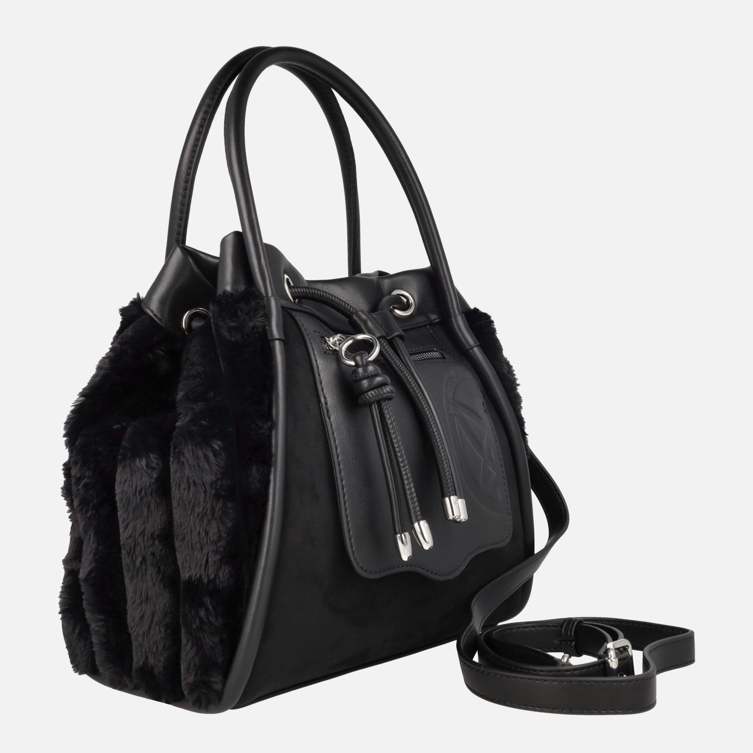 Bolsos de hombro con laterales en pelo suave y asa bandolera