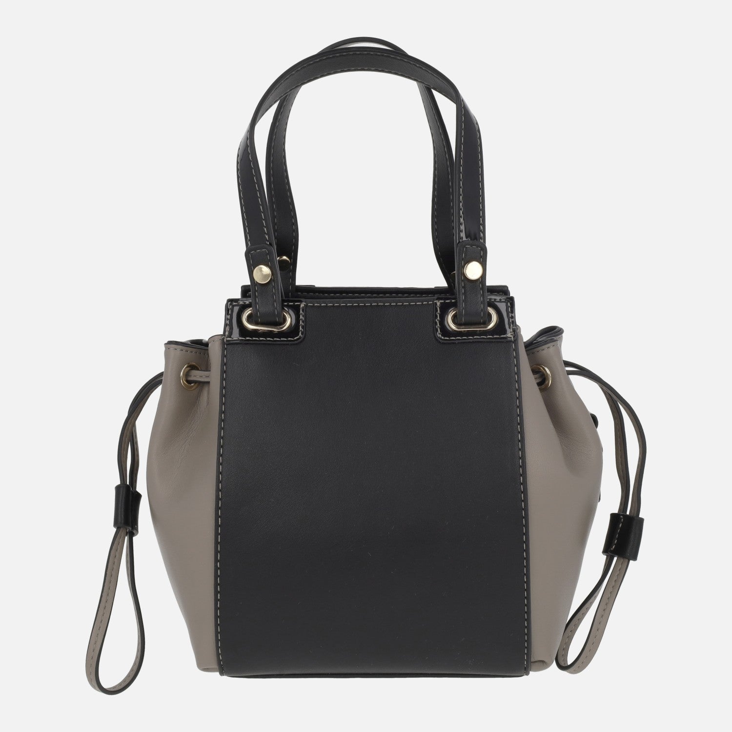 Bolsos Robert Pietri modelo 05697 linea Manhattan, disponibles en combinado negro y en combinado cuero. Bolsos con exterior en sintéticos efecto piel, con acabado bicolor. Compartimento principal con cierre de cremallera y además cintas para fruncir. Interior textil con bolsillos interiores. Dos asas para llevar de mano y asa fija y extraíble para bandolera. Medidas: 21 cm de alto central x 18 cm de alto exterior x 19 cms de ancho inferior x 28 cm de ancho superior x 13 cms de fondo.