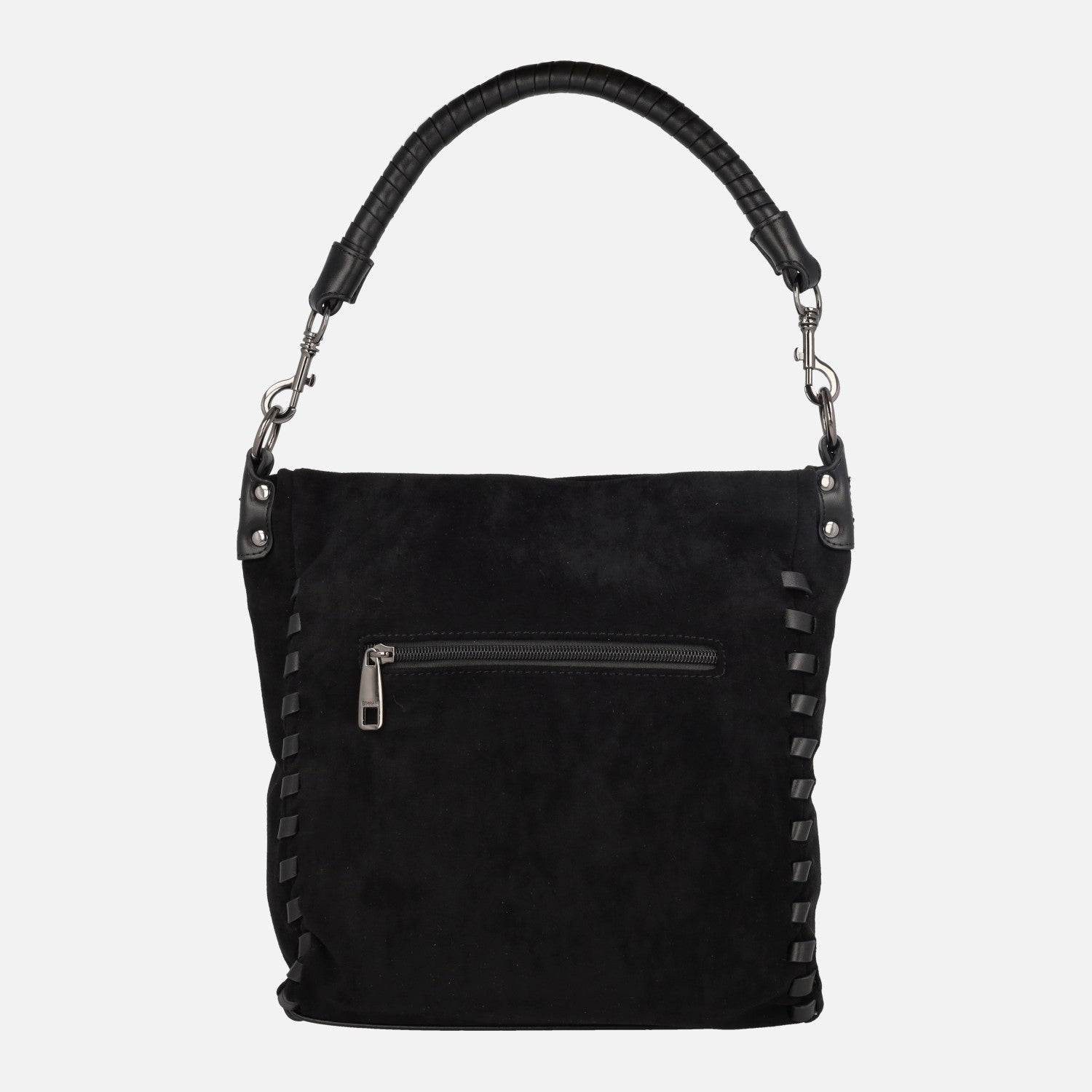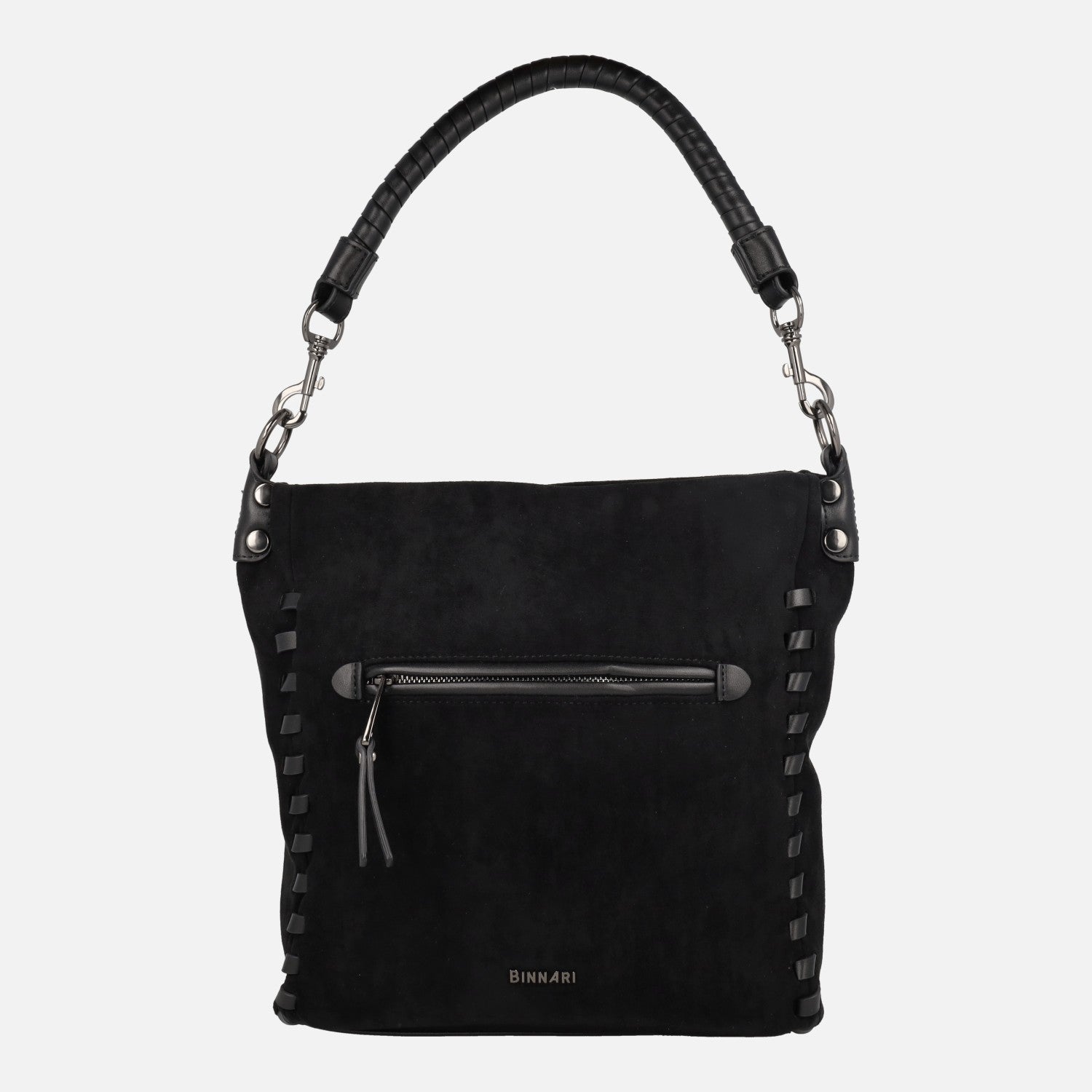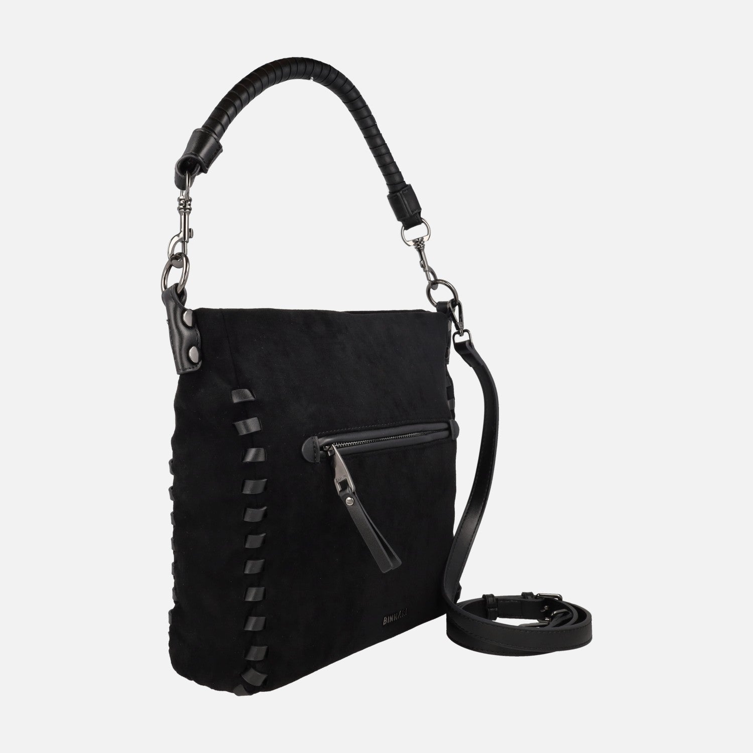 Bolsos de la marca Binnari modelo 20761 Flavia, disponibles en marrón y en negro. Bolsos elaborados en tejido efecto ante, con detalle de pespuntes. Asa corta para hombro y además asa larga para llevar de bandolera, ajustable con hebilla. Cierre principal con cremallera. Bolsillos delantero y trasero ambos con cremallera. Interior textil con dos bolsillos, uno de ellos con cremallera. Medidas: 28 cm de alto x 27,5 cm de ancho x 6,5 cm de fondo.