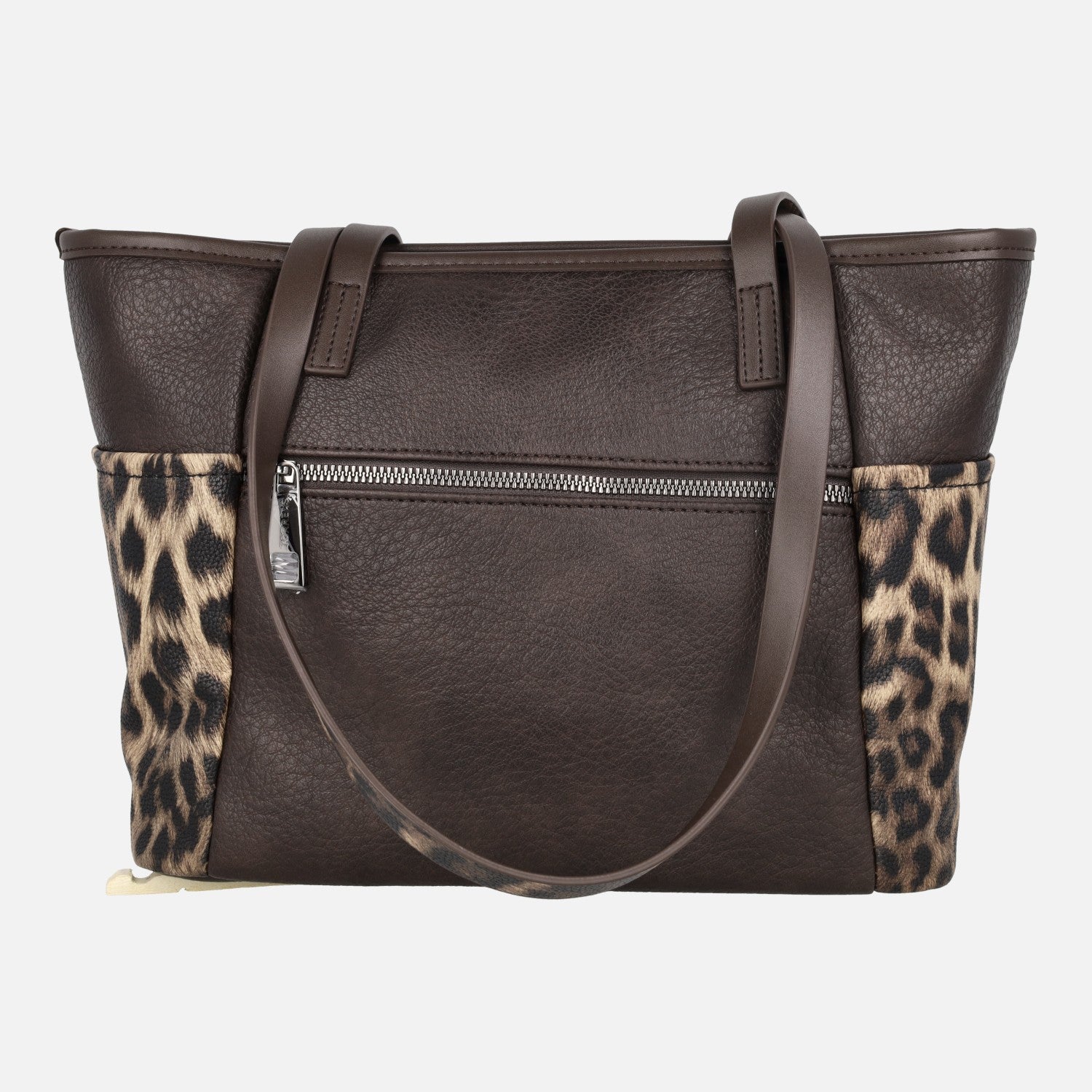 Bolsos para hombro en marrón chocolate con manchas print leopardo