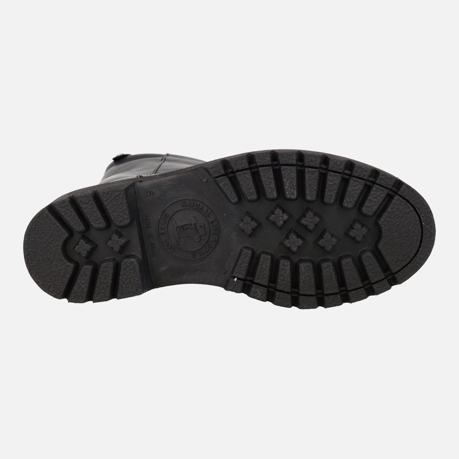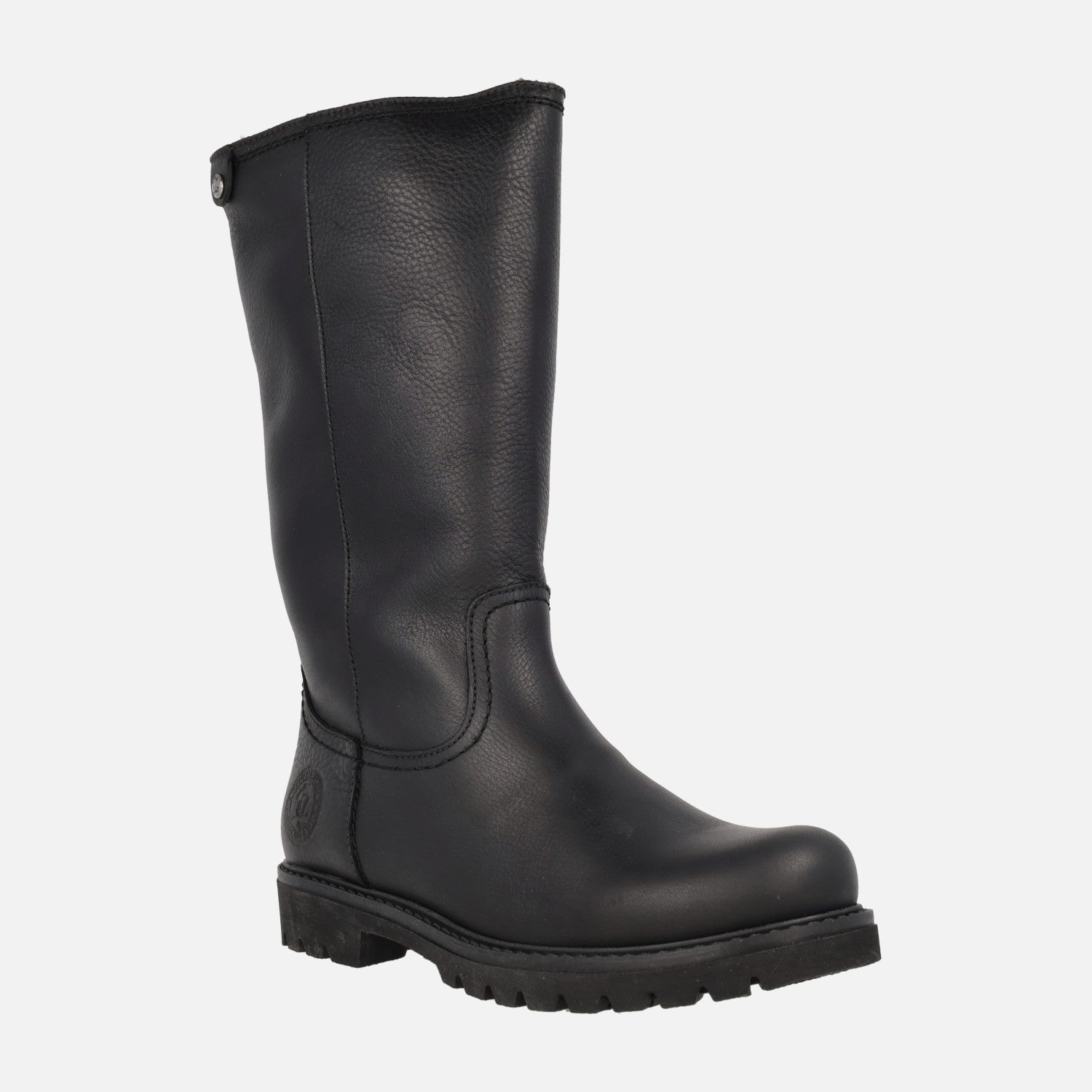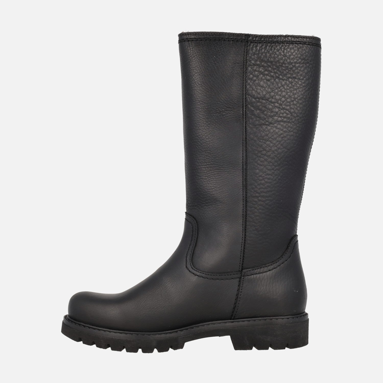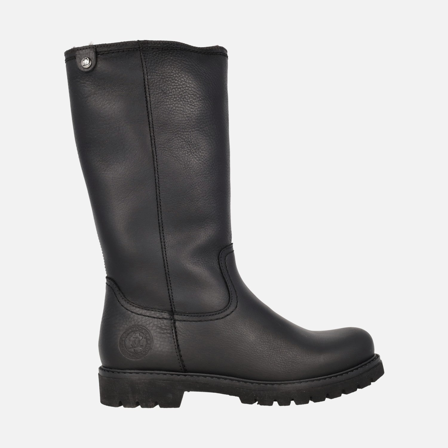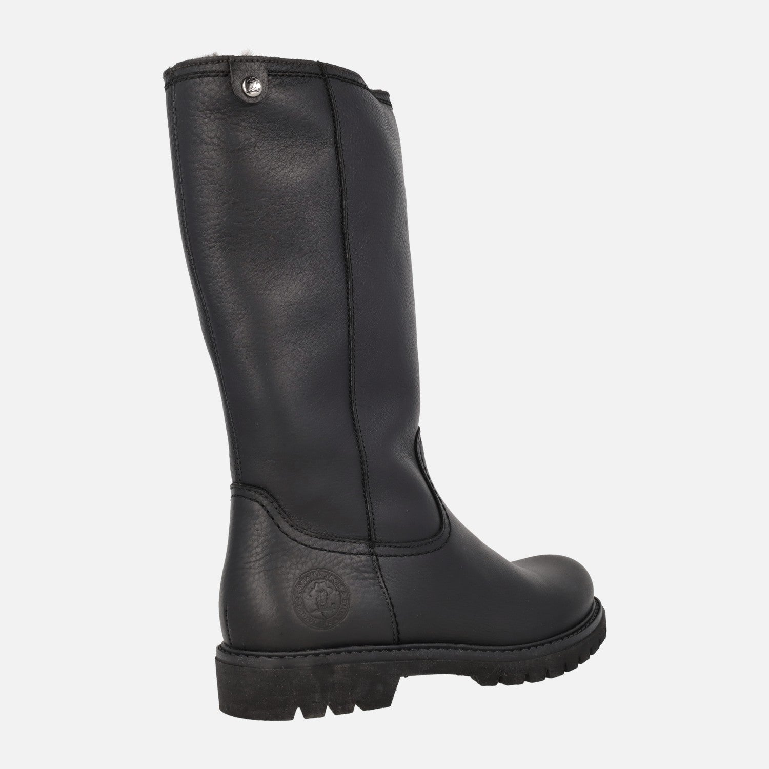 Botas altas de piel de la marca Panama jack modelo Bambina B60 Napa grass negro. Botas de piel con tratamiento Waterproof, forro interior de pelo. Plantillas extraíbles. Piso de caucho natural, con 3 cm de altura de tacón (2 cm parte delantera). Caña de 28,5 cm. Made in Spain.