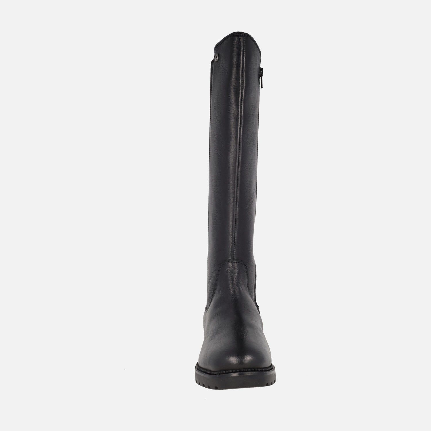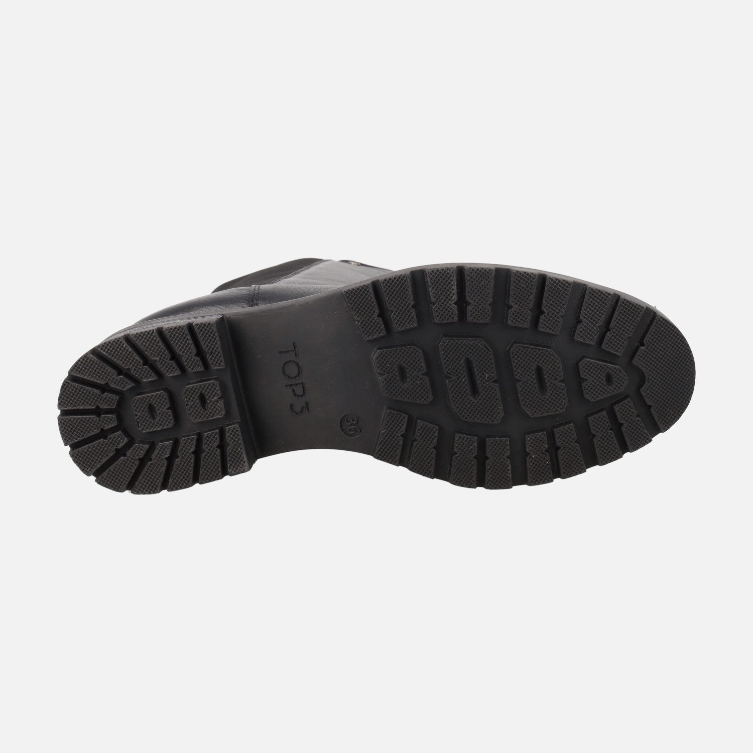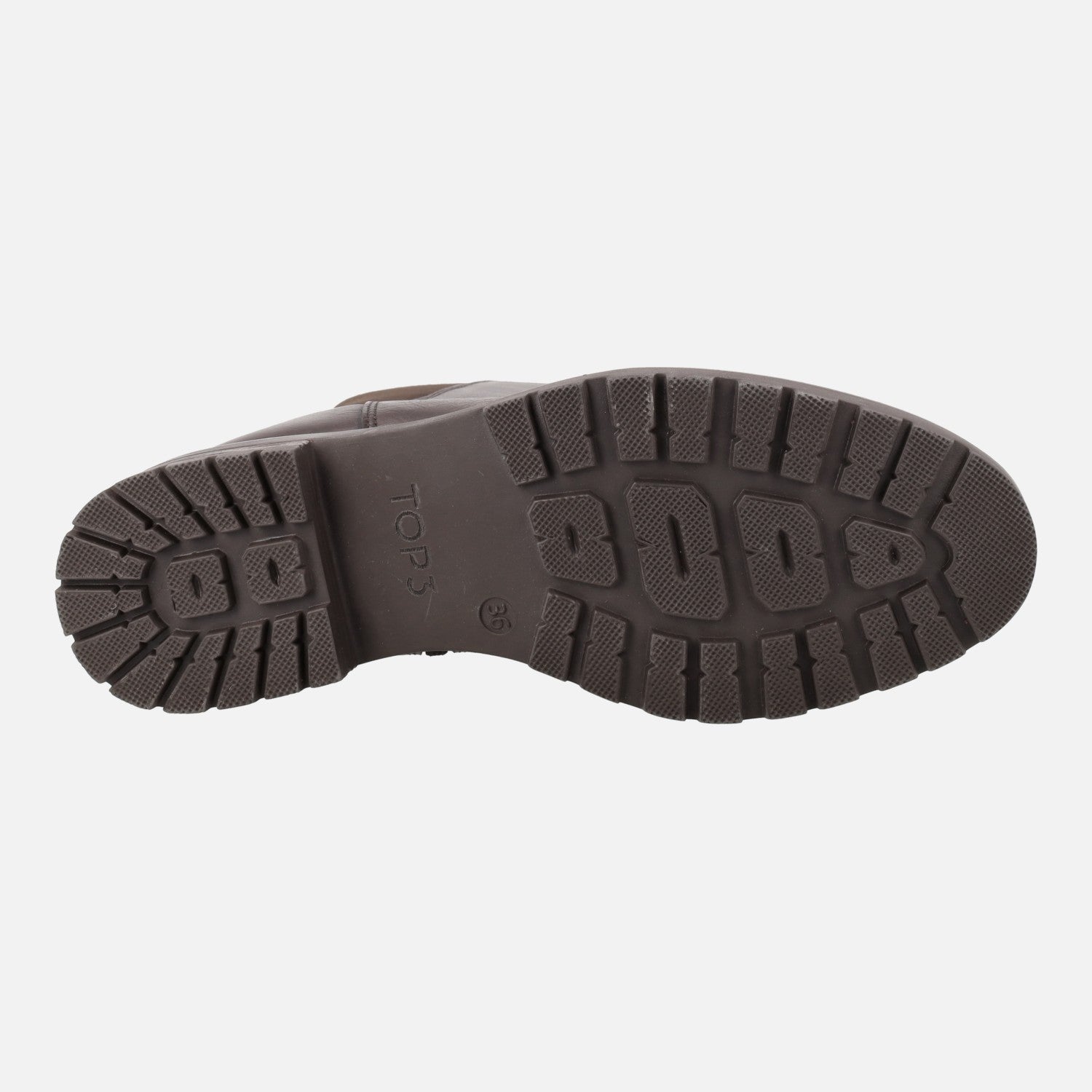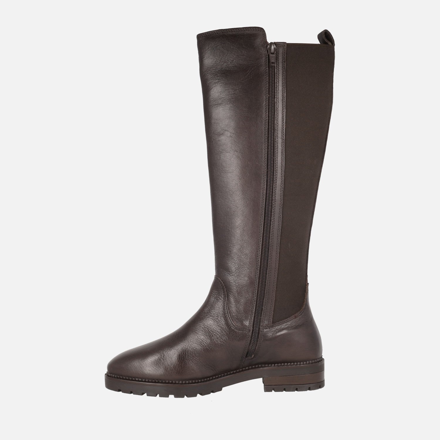 Botas altas de la marca TOP3 modelo SS863 Moka. Botas elaboradas en piel marrón chocolate con trasera en tejido elástico. Cierre de cremallera en el lado interior. Interior mixto en piel y tejido. Piso sintético. Caña de aproximadamente 38,5 cm de altura. Tacones de 3,5 cm.