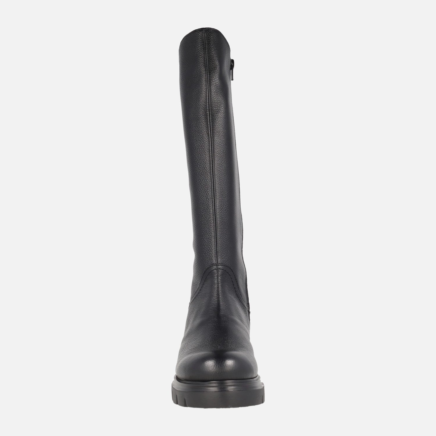 Botas de caña alta para mujer de la marca Wonders, modelo Bones A-4304 Negro. Botas altas elaboradas en piel negra, con cierre de cremallera en el lado interior. Interior mixto en piel y tejido con plantillas Memory gel. Piso FLYGRIP muy ligero y de gran agarre (EVA expandida). Altura de caña 38 cm aproximadamente. Puntera redondeada. Tacones de 4 cm de altura (2,5 cm plataforma delantera).