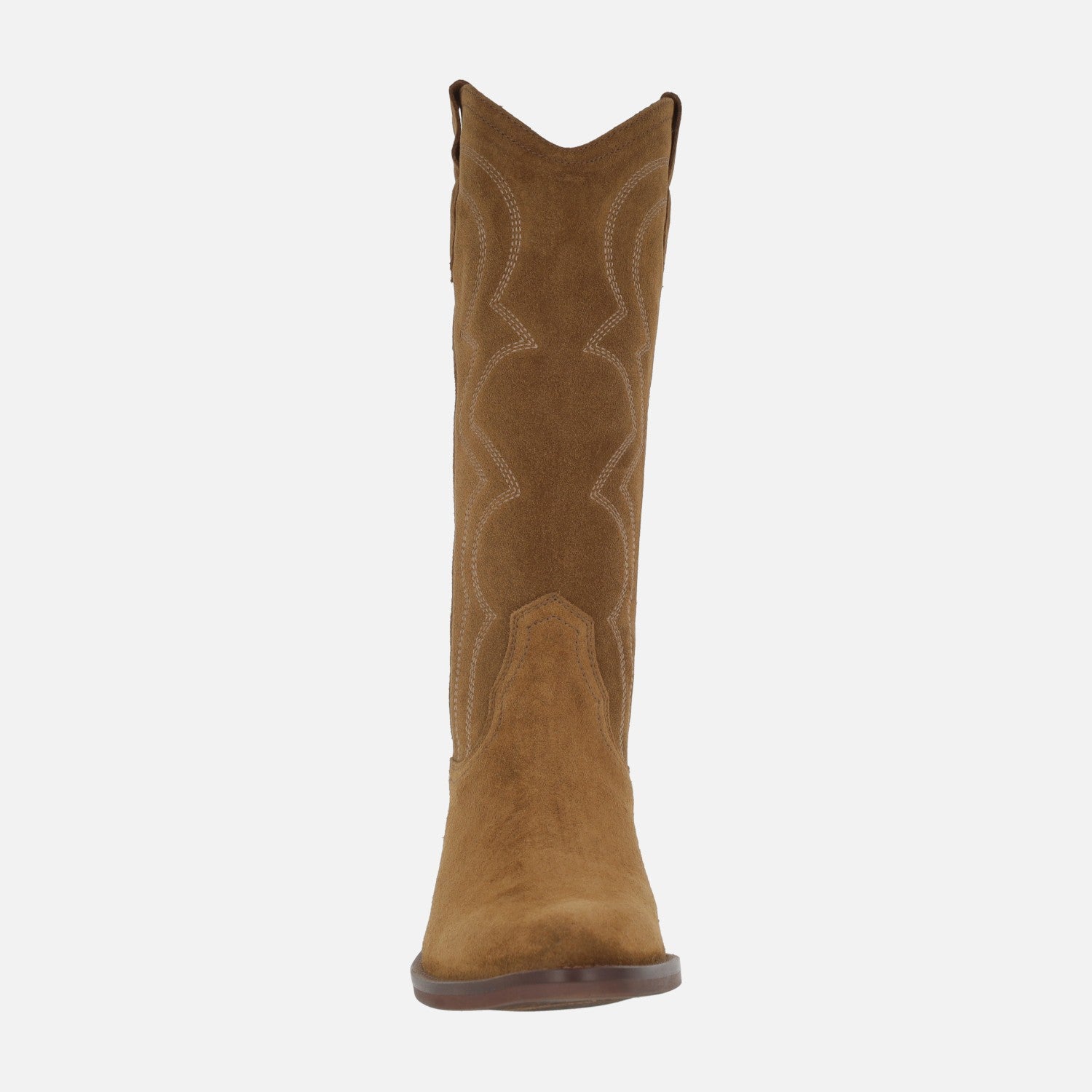 Botas cowboy en serraje oil capuccino con bordados DKT87
