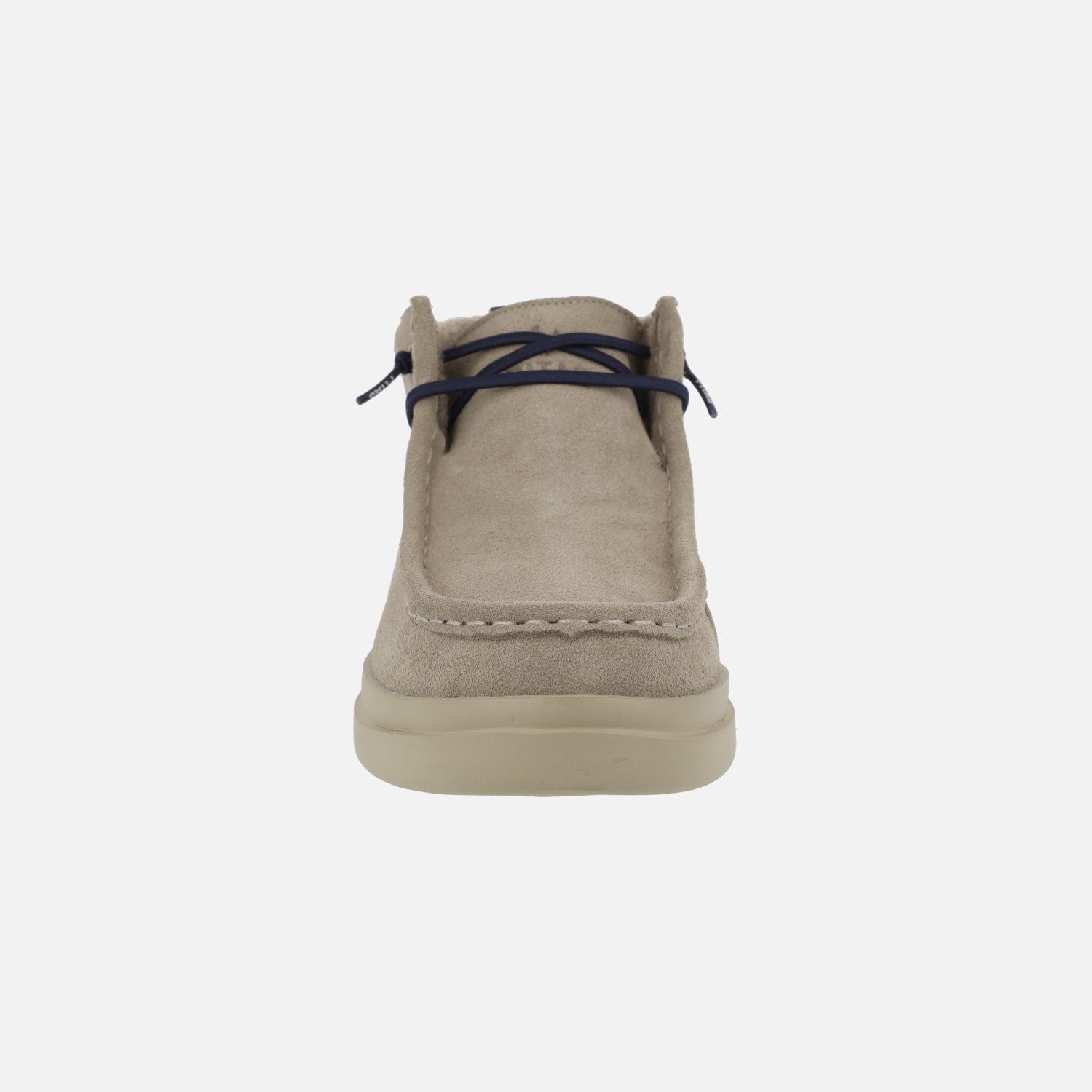 Botines para mujer modelo GARDA de la marca Walk in Pitas, disponibles en verde kaki y en taupe. Botas elaboradas en serraje hidrofugado, combinado con tejido en el collarín. Cordones elásticos. Forro textil con membrana impermeable PITAS-TEX resistente al agua y gran aislante térmico. Caña de 8 cms de altura. Plantillas extraíbles forradas de piel. Piso de goma EVA Ultralight, muy ligero, de 4,5 cms de altura trasera (2,5 cms altura delantera).