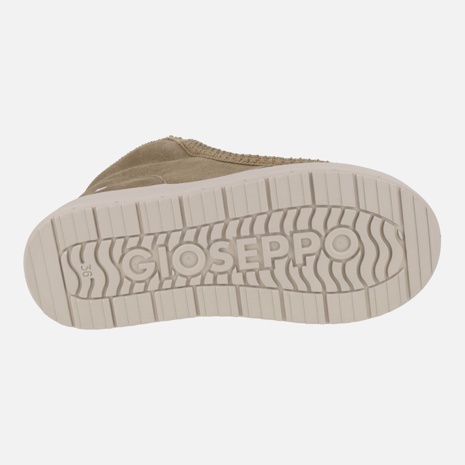 Botas estilo australianas de la marca Gioseppo, modelo Stark 73267, disponibles en color taupe. Botas de piel serraje con pala textil y lentejuelas. Forro interior de pelo (planta y caña). Plantillas extraíbles. Altura de caña 12,5 cms. Piso de goma eva, muy ligero, de aproximadamente 3 cms de altura.