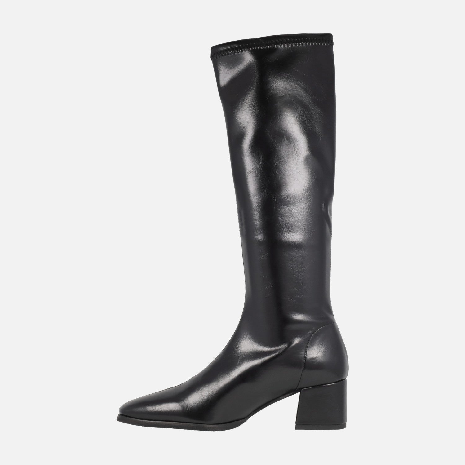Preciosas botas de la nueva colección de Miss Elastic, modelo 078331/62 Malori Negro. Botas de caña alta elaboradas en materiales elásticos efecto piel, disponibles en color negro. La altura de caña es de 39 cm. Estas botas van tratadas para repeler ligeramente el agua (ECO DRY Solutions). Interior textil. Tacones anchos, de 5 cms de altura. Made in Spain.