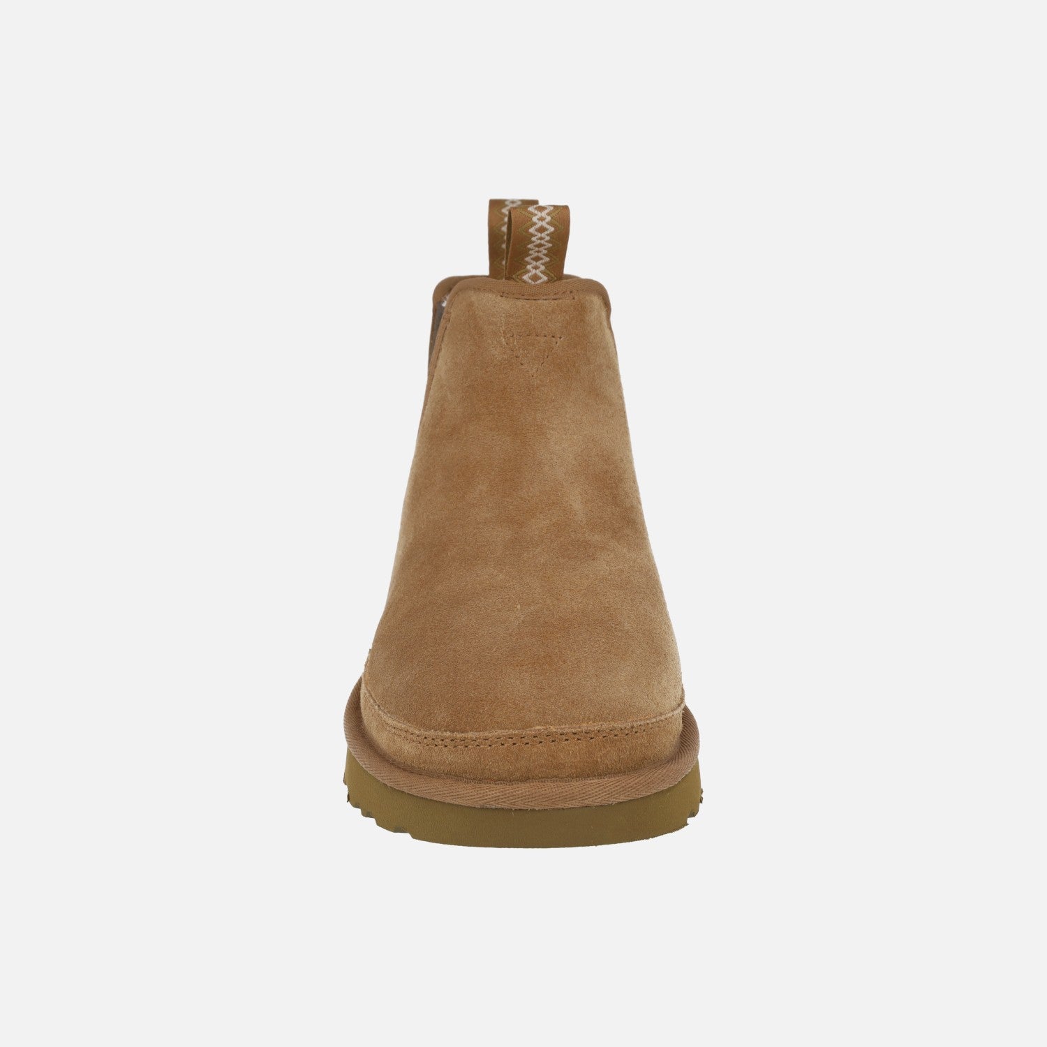 Botas para hombre estilo chelsea de la marca UGG modelo 1121644 chesnut Neumel chelsea. Botas elaboradas en ante color camel con elásticos laterales. Tirador en la parte delantera y en la trasera, para facilitar el calce. Interior forrado de pelo (60% lana reciclada 20% lyocell). Piso de goma EVA.