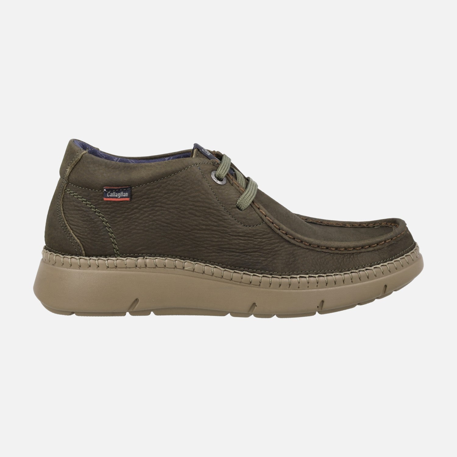 Botines de piel nobuck, bajos, para hombre, de la marca Callaghan, modelo 60701, disponibles en marrón, azul marino y verde kaki. Botines de piel con interior textil. Plantillas extraíbles. Piso ADAPTLITE, super ligero, flexible y de gran amortiguación. Forro textil transpirable.